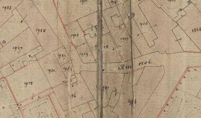 Plan cadastral de 1844 : section K8, rue Noé. AD Morbihan 3P 297/58.Immatriculation