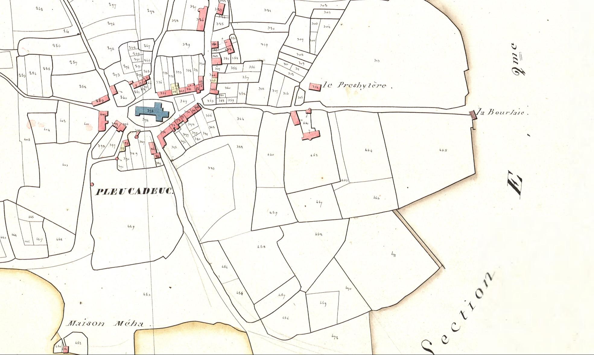 Le bourg sur le cadastre de 1824, section K, dite du bourg (Archives départementales du Morbihan, série 3 P 205/21)Immatriculation