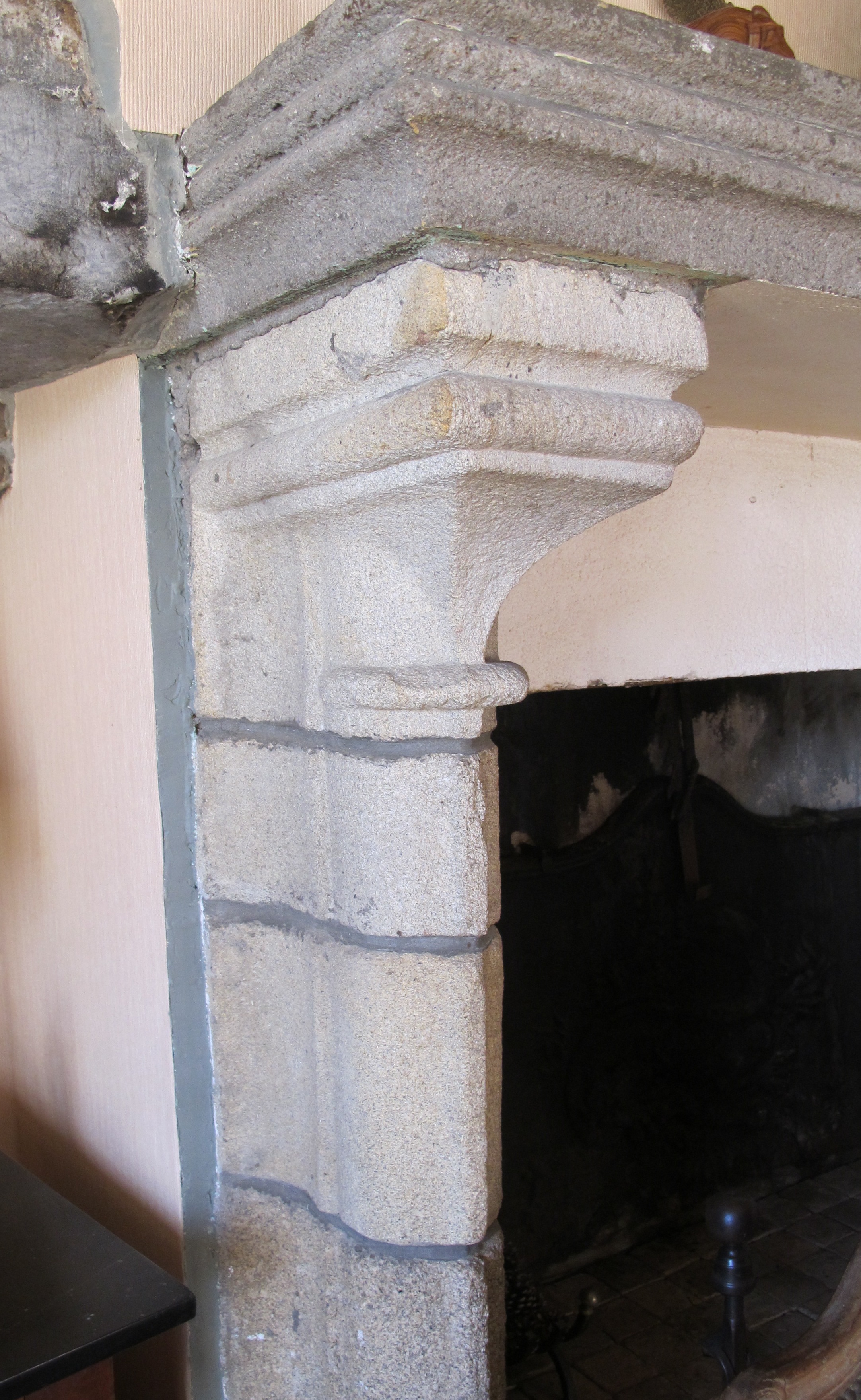 Salle ouest, détail du piédroit en remploi dans la nouvelle cheminéeImmatriculation