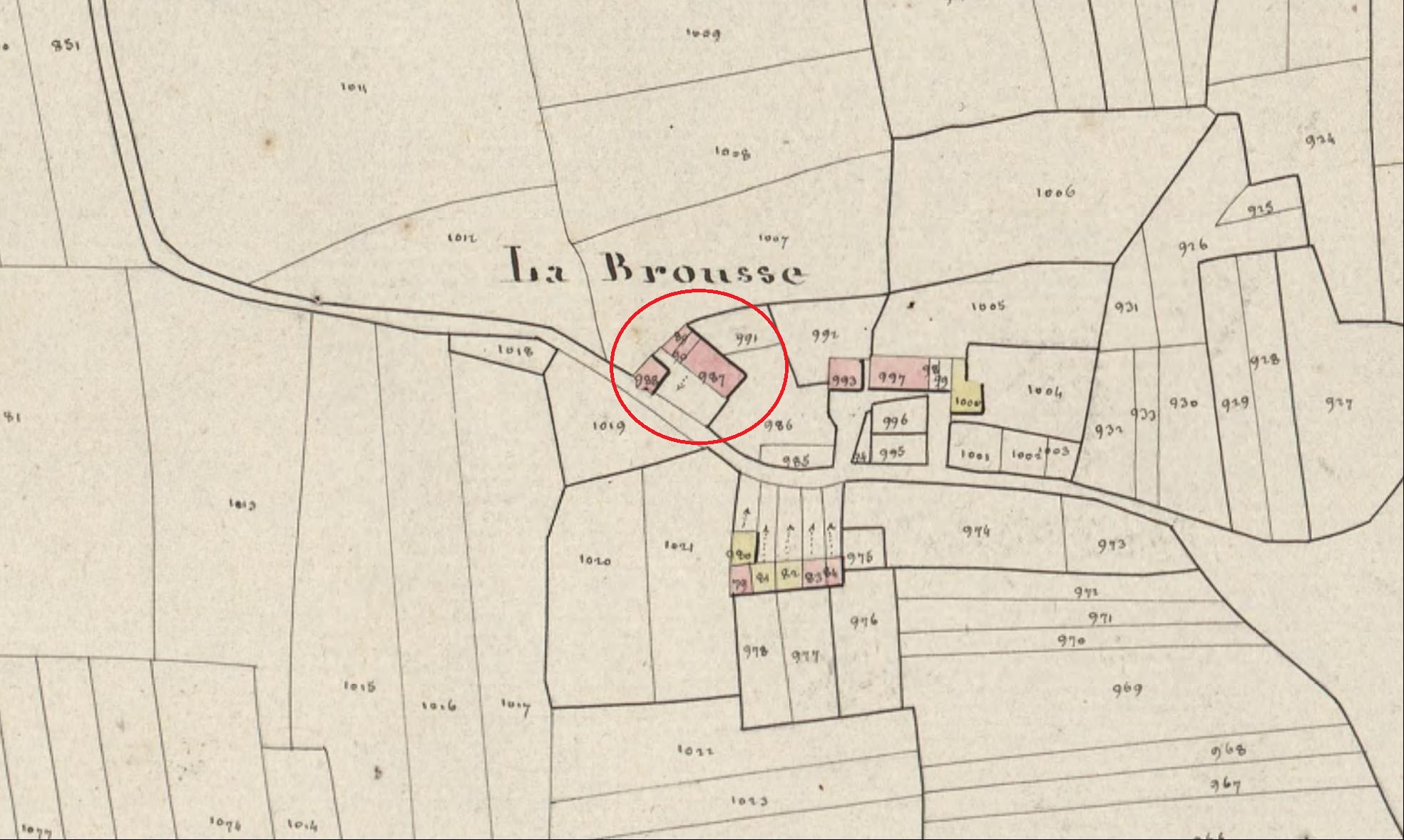 La Brousse de bas sur le cadastre de 1824 (A. D. du Morbihan, 3 P 157/10)Immatriculation