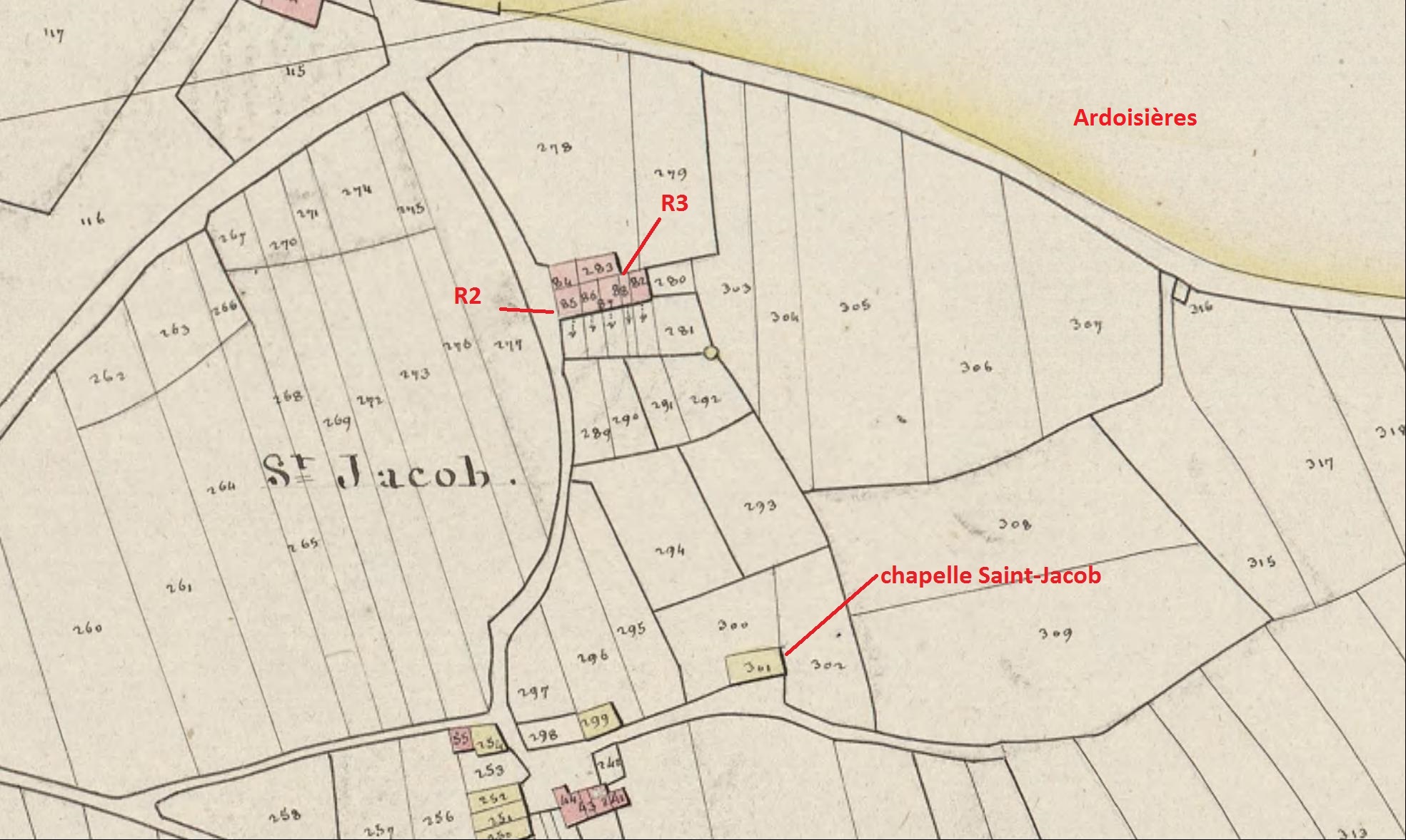 La chapelle Saint-Jacob sur le cadastre de 1824 (A. D. du Morbihan, 3 P 157/6)Immatriculation