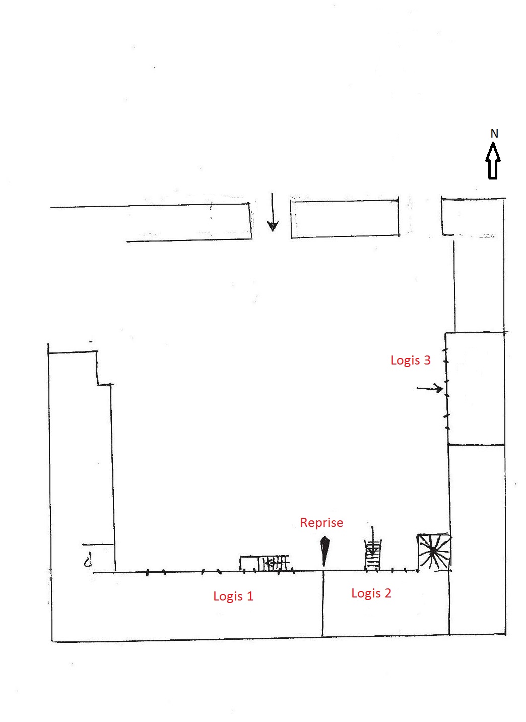 Manoir : plan de masse (schéma par J. J. Rioult, 1985)Immatriculation