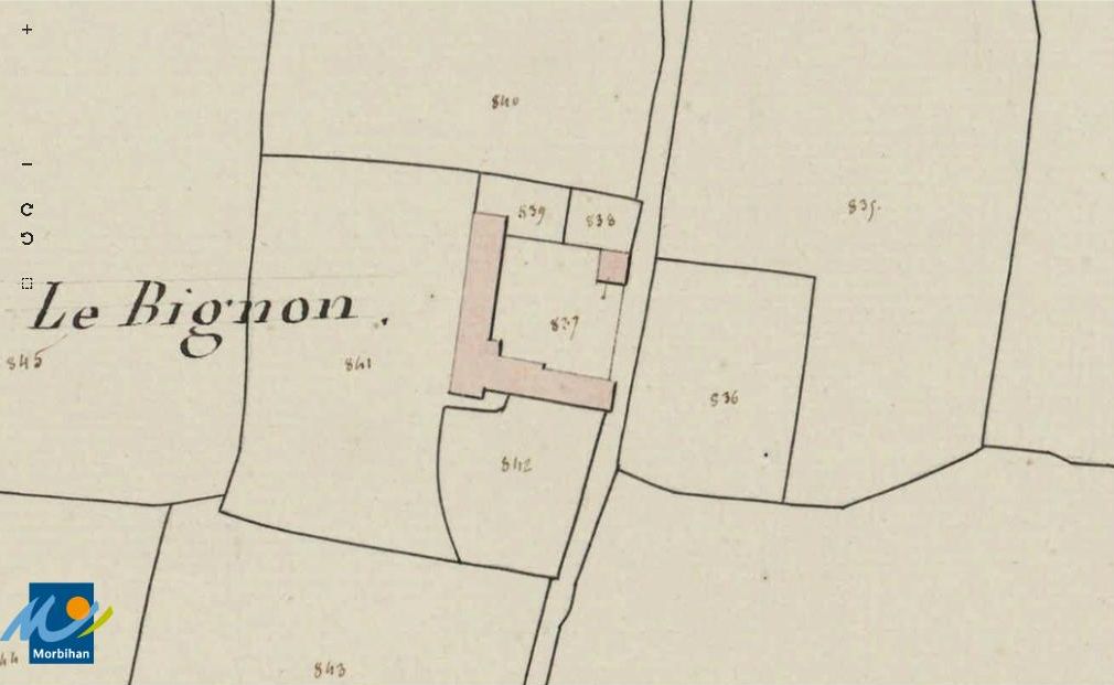Le Bignon sur le cadastre de 1829 (A. D. du Morbihan, 3 P 123/4)Immatriculation