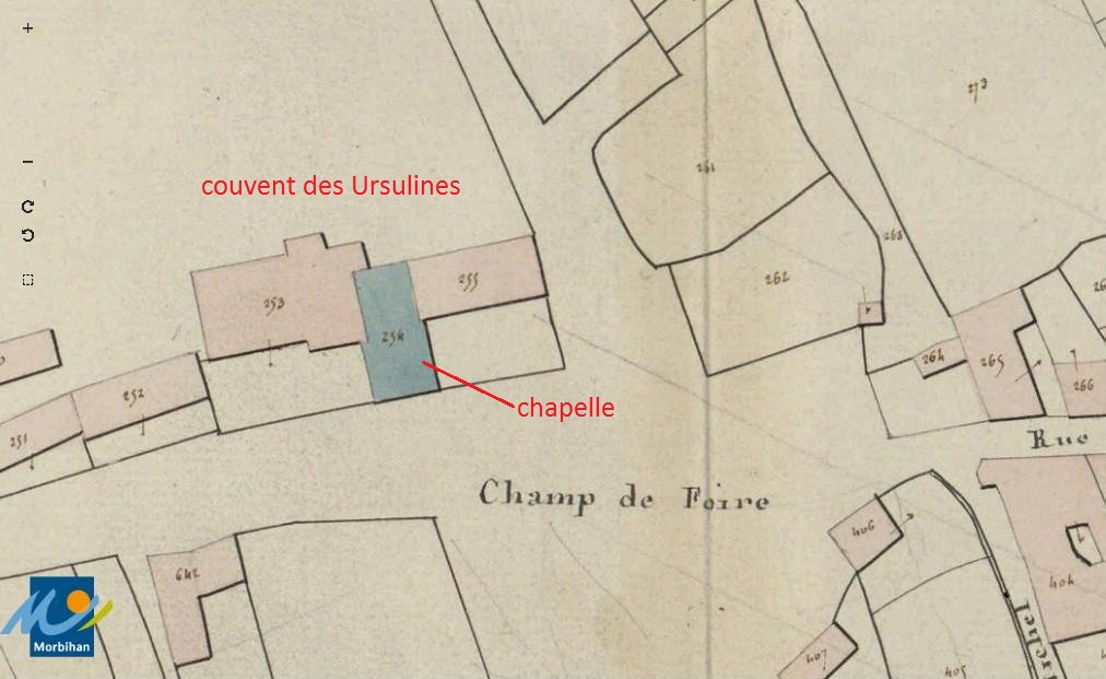 Le couvent des Augustines sur le cadastre de 1829 (A. D. du Morbihan, 3 P 171/5)Immatriculation