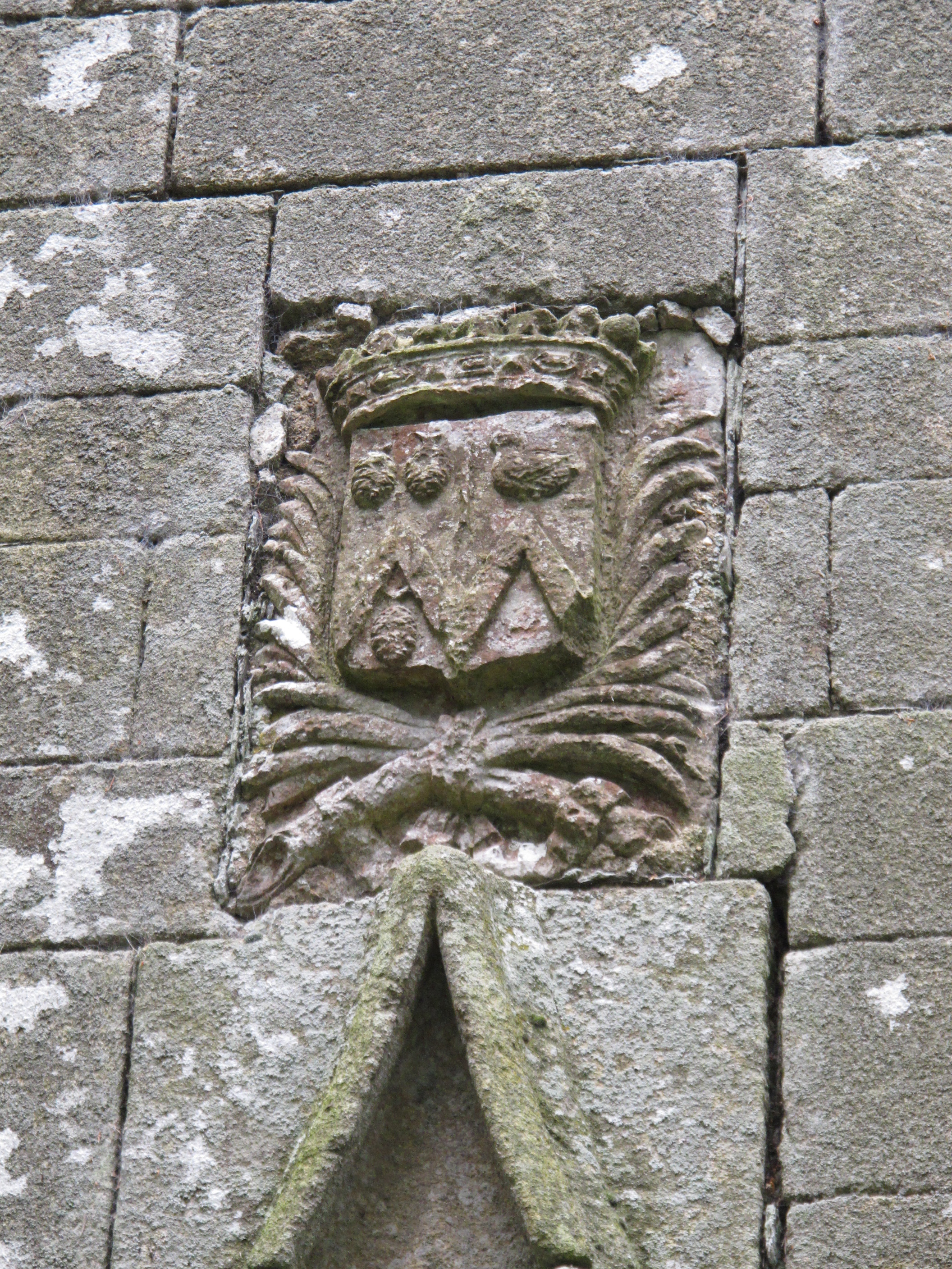 Chapelle, élévation ouest : écu portant, au-dessus de la porte, les armoiries de René Pépin et de son épouse (état en 2012)Immatriculation