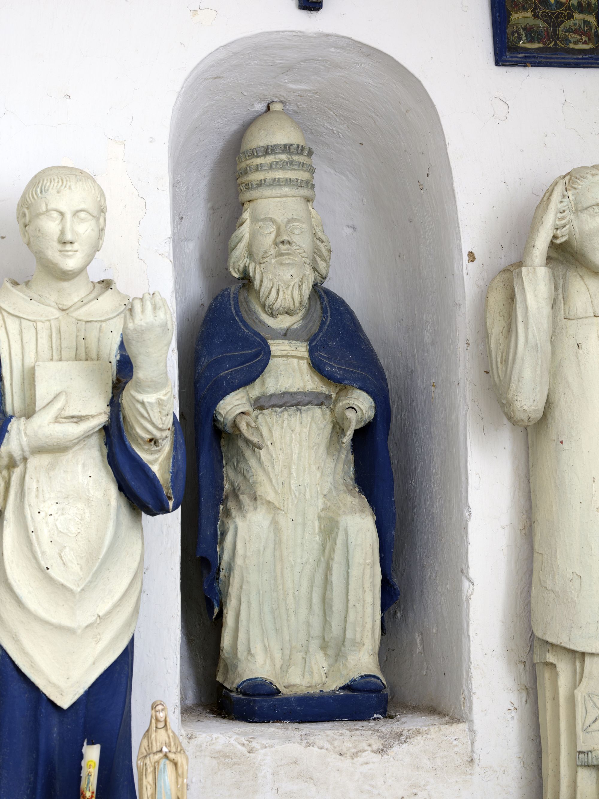 Cavan, Kericoul : chapelle Sainte-Mémoire, vue intérieure, statue de la Trinité (le Père, le Fils et le Saint-Esprit)Immatriculation