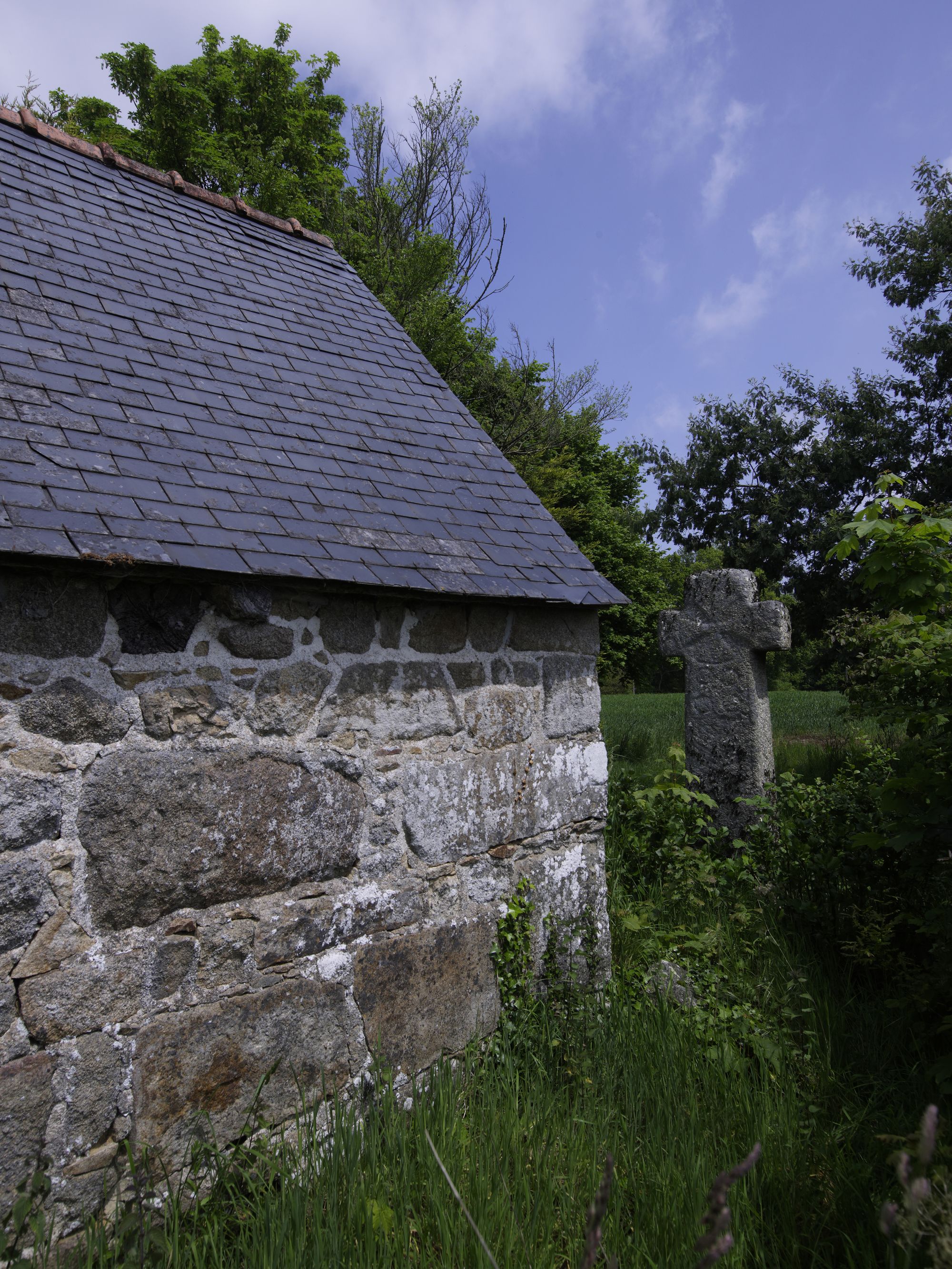 Cavan, Kericoul : chapelle Sainte-Mémoire et croix, vue de sitation depuis l'ouestImmatriculation