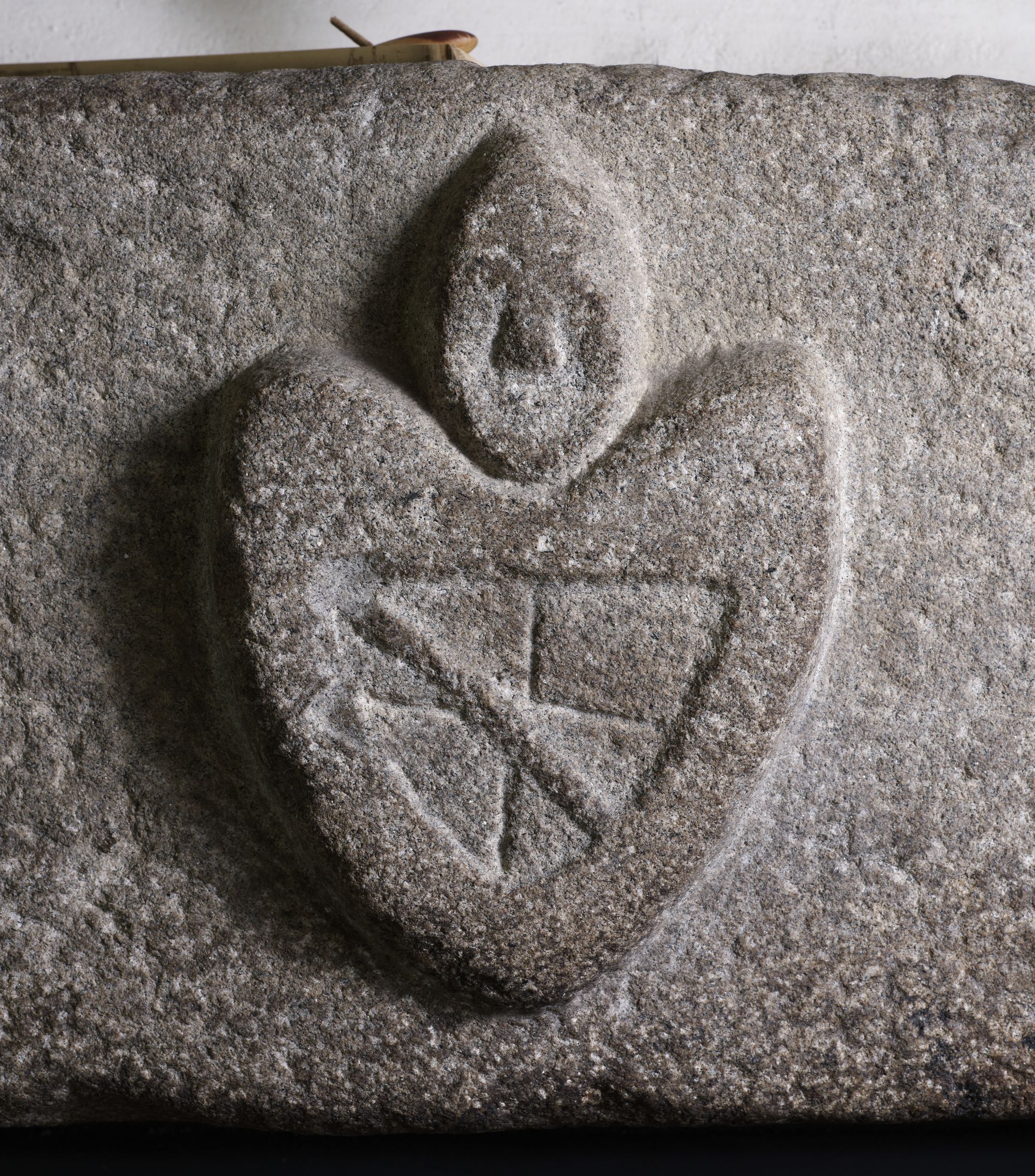 Caouënnec-Lanvézéac, Kerloscant : manoir, vue intérieure, rez-de-chaussée, cheminée est (remploi provenant d'une ferme), détail de l'ornementationImmatriculation