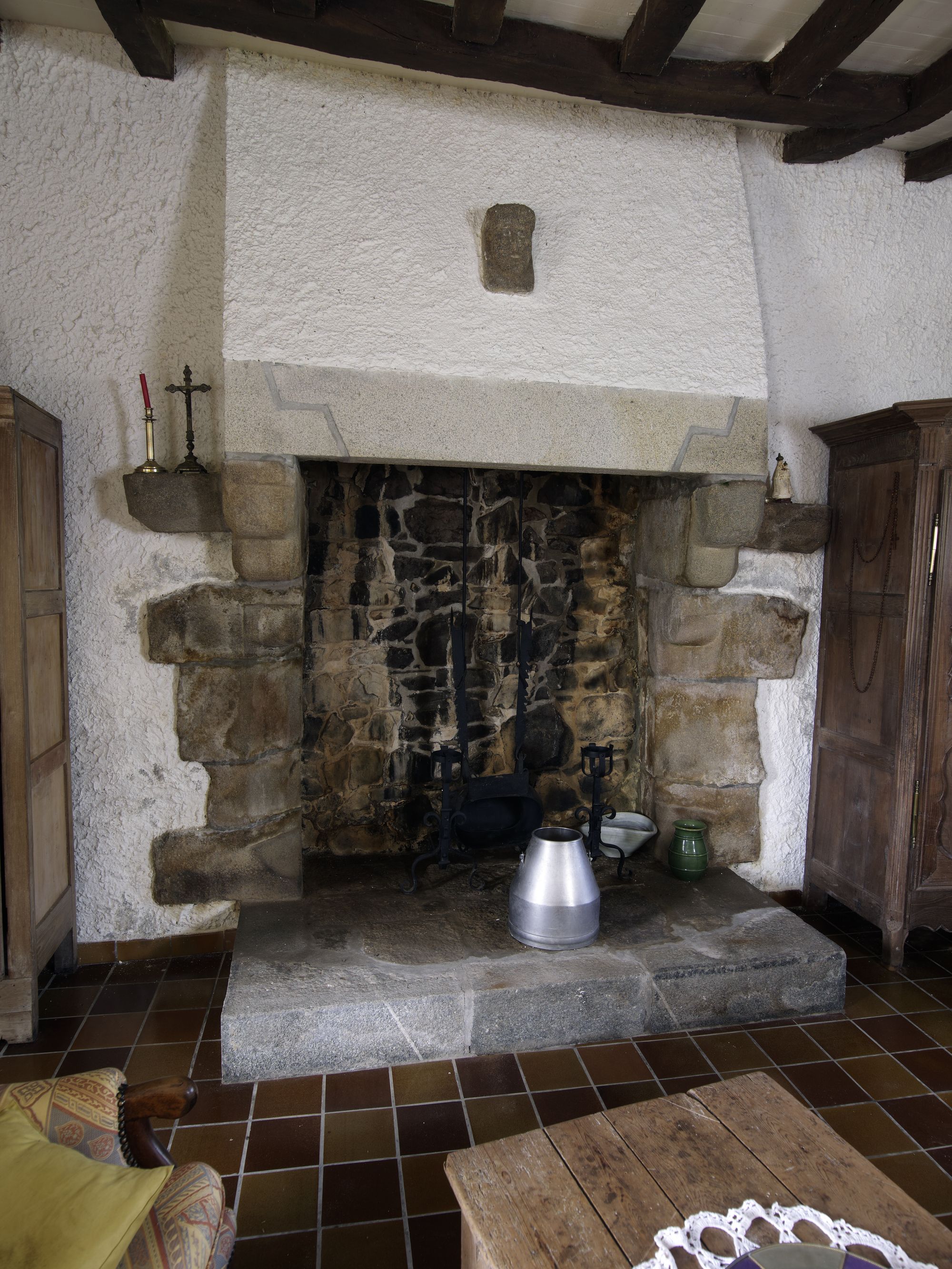 Caouënnec-Lanvézéac, Kerloscant : manoir, vue intérieure, rez-de-chaussée, cheminée ouestImmatriculation
