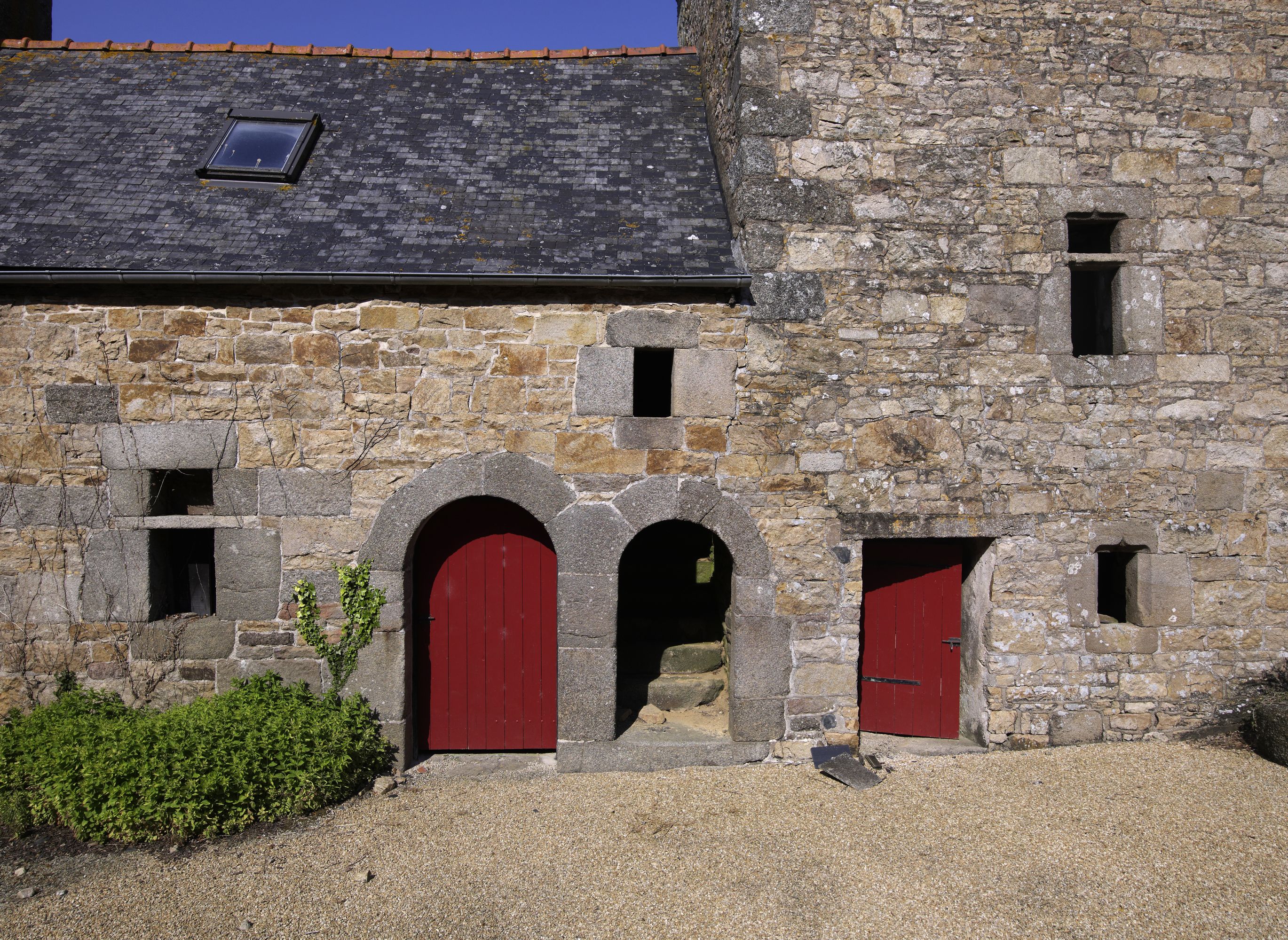 Cavan, Bois Riou : logis est et pavillon d'entrée, élévation antérieure, détail des ouverturesImmatriculation