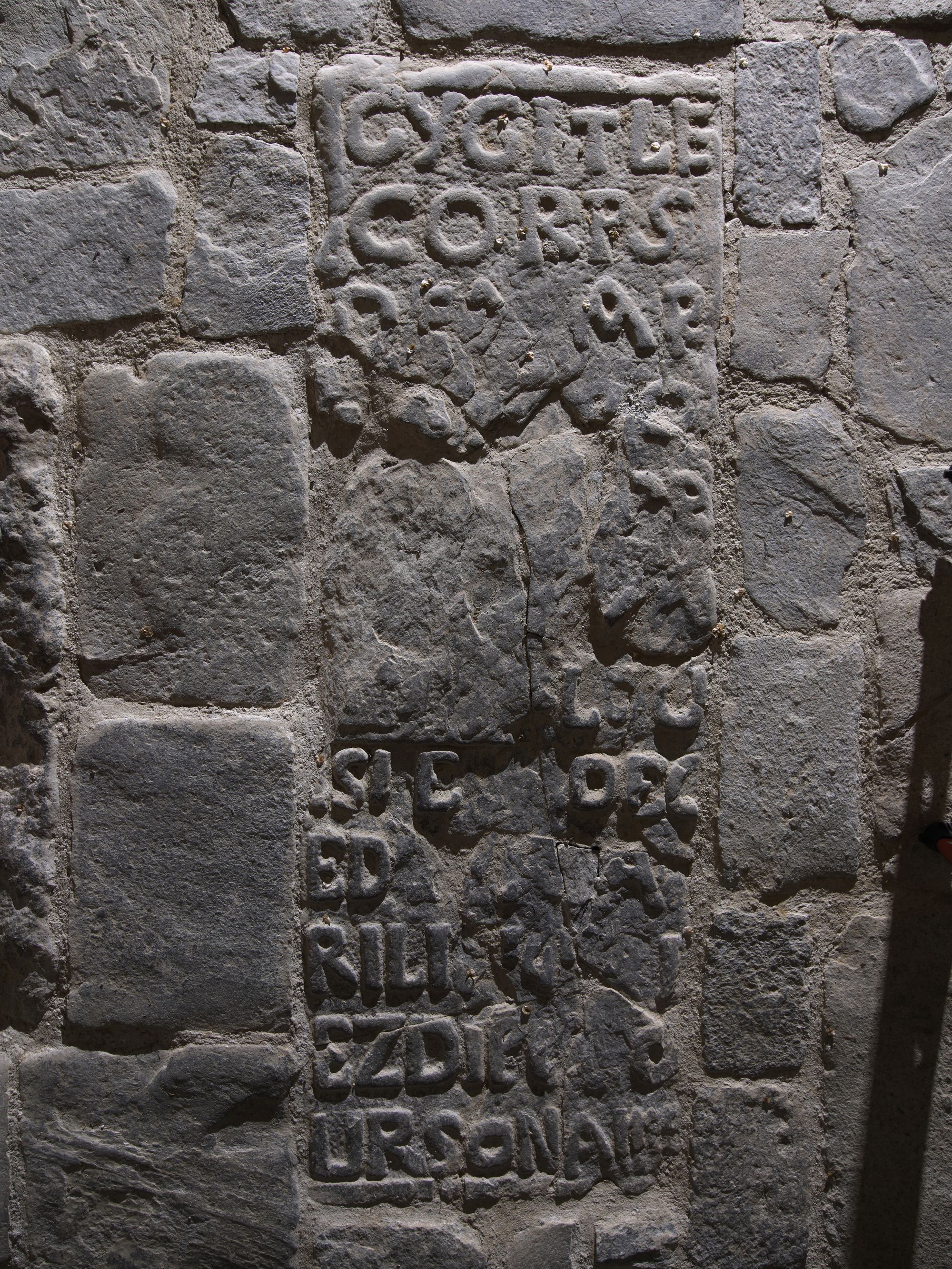 Caouënnec-Lanvézéac, bourg de Lanvézéac : église paroissiale de Saint-Ezéchiel, nef, pierre tombaleImmatriculation