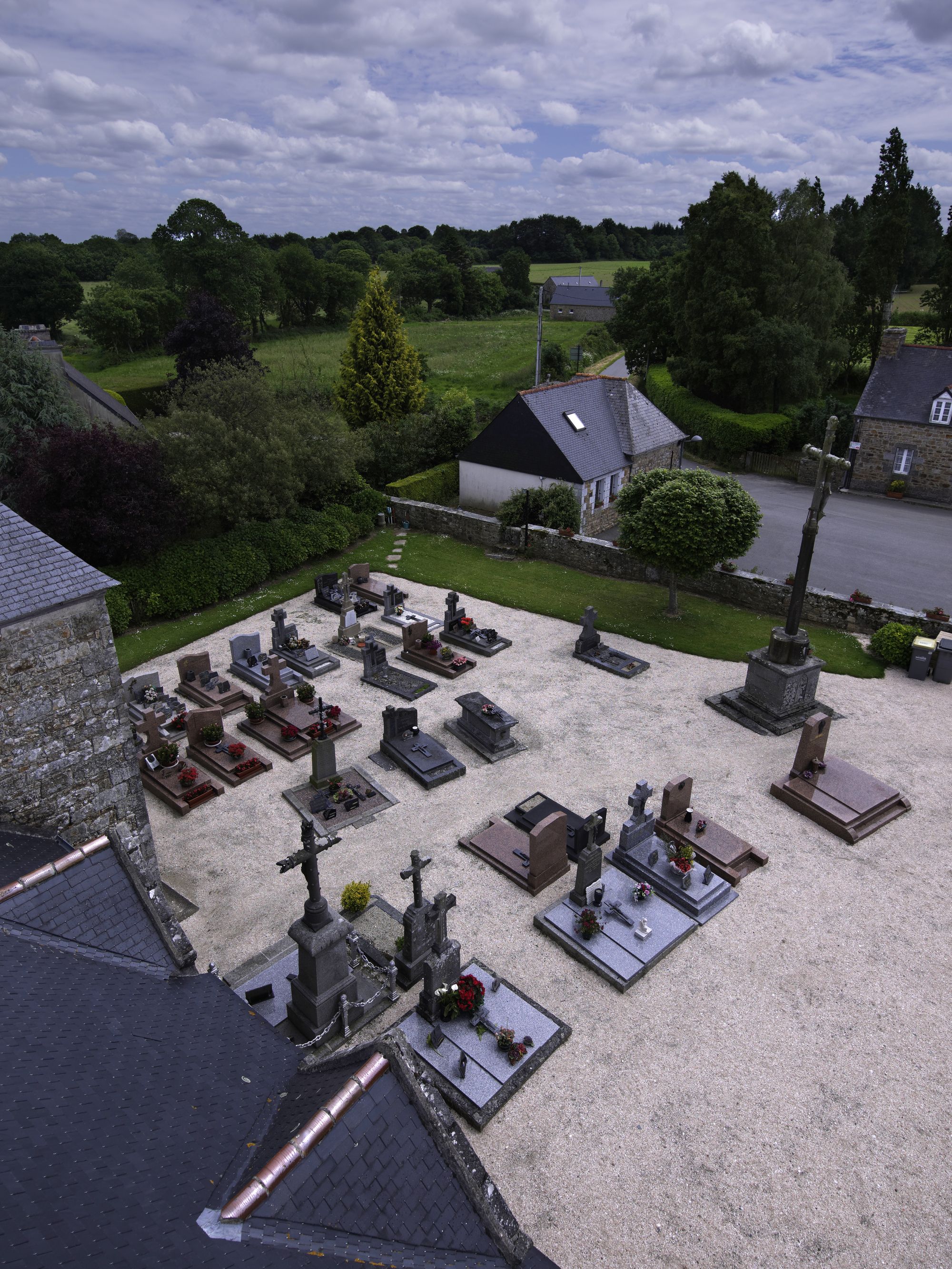 Berhet, le bourg : le cimetière depuis le clocher de l'église paroissiale de Sainte-BrigitteImmatriculation
