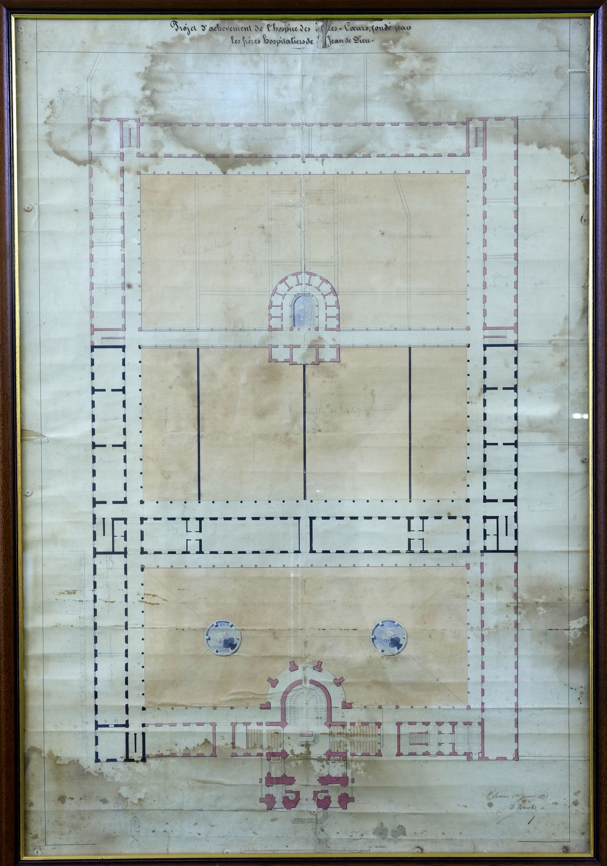 Plan du projet de l'hôpital Saint-Jean-de-Dieu de l'architecte Eugène Hawke, datant de juin 1851Immatriculation