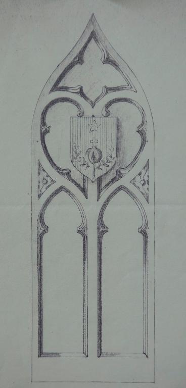 Plan d'une stalle avec le symbole de la grenade, de l'entreprise Boyer de Dinan, vers 1935Immatriculation