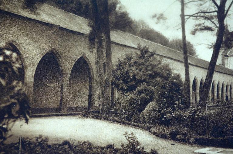 Photographie ancienne, vue du passage couvert, situé en contrebas au nord de la chapelle des Bas Foins, avec vue de la chapelle des Sacrés Coeurs en arrière planImmatriculation