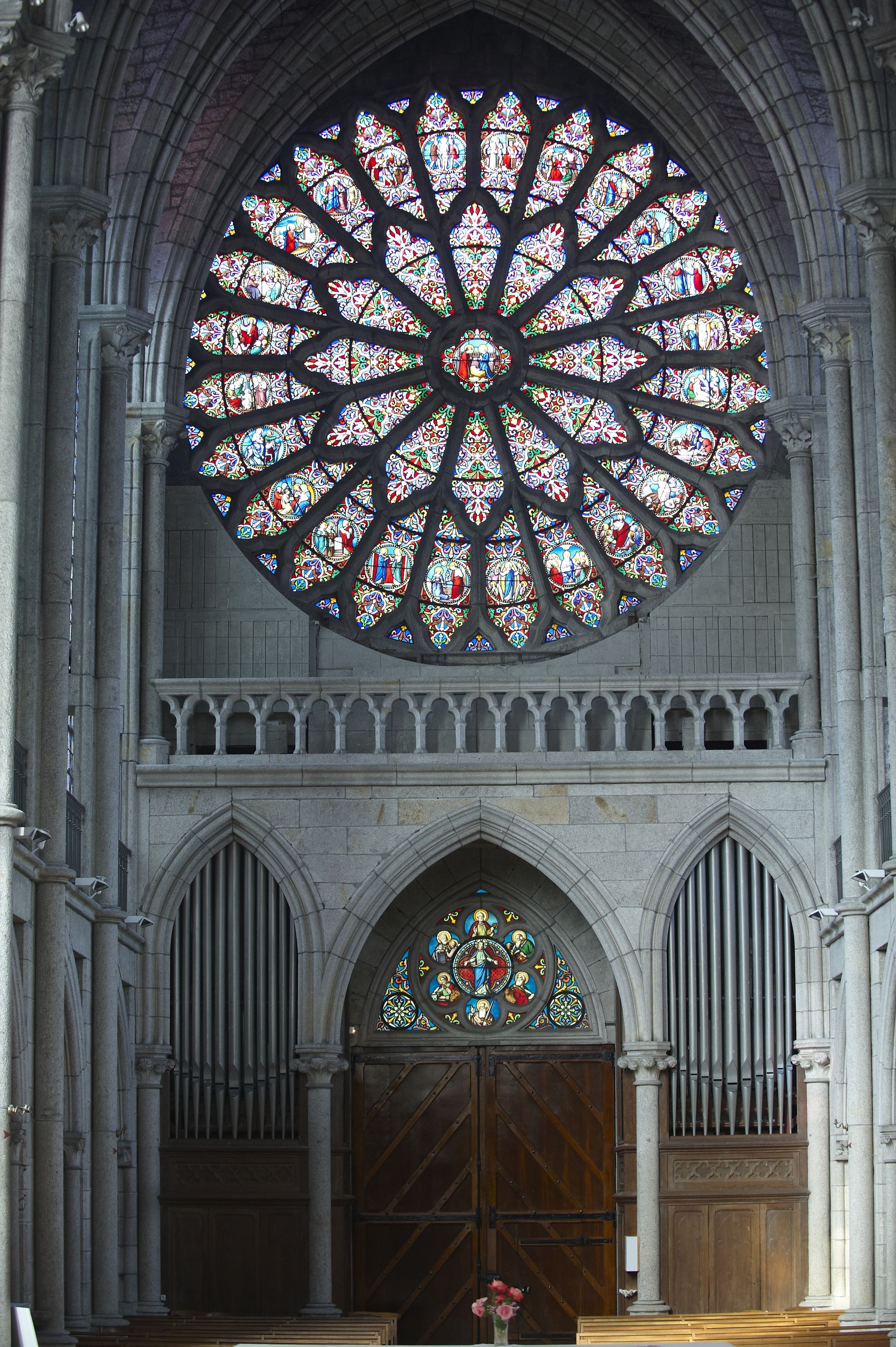 Intérieur de la chapelle des Sacrés Coeurs, vue générale de la façade ouest avec rosaceImmatriculation