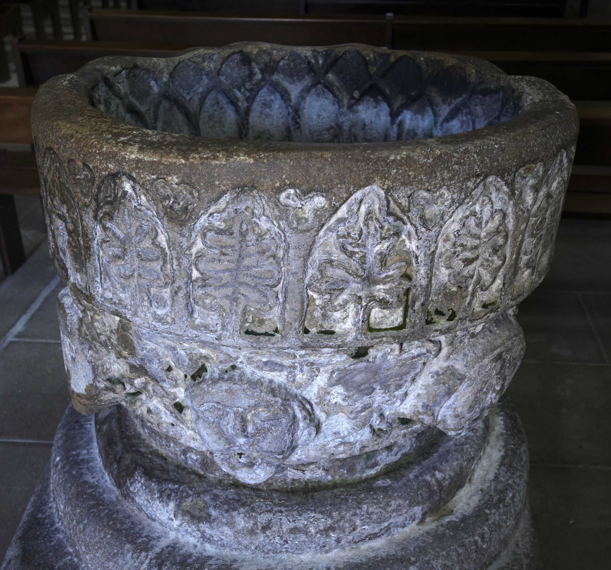 Intérieur, vue rapporchée de la cuve baptismaleImmatriculation
