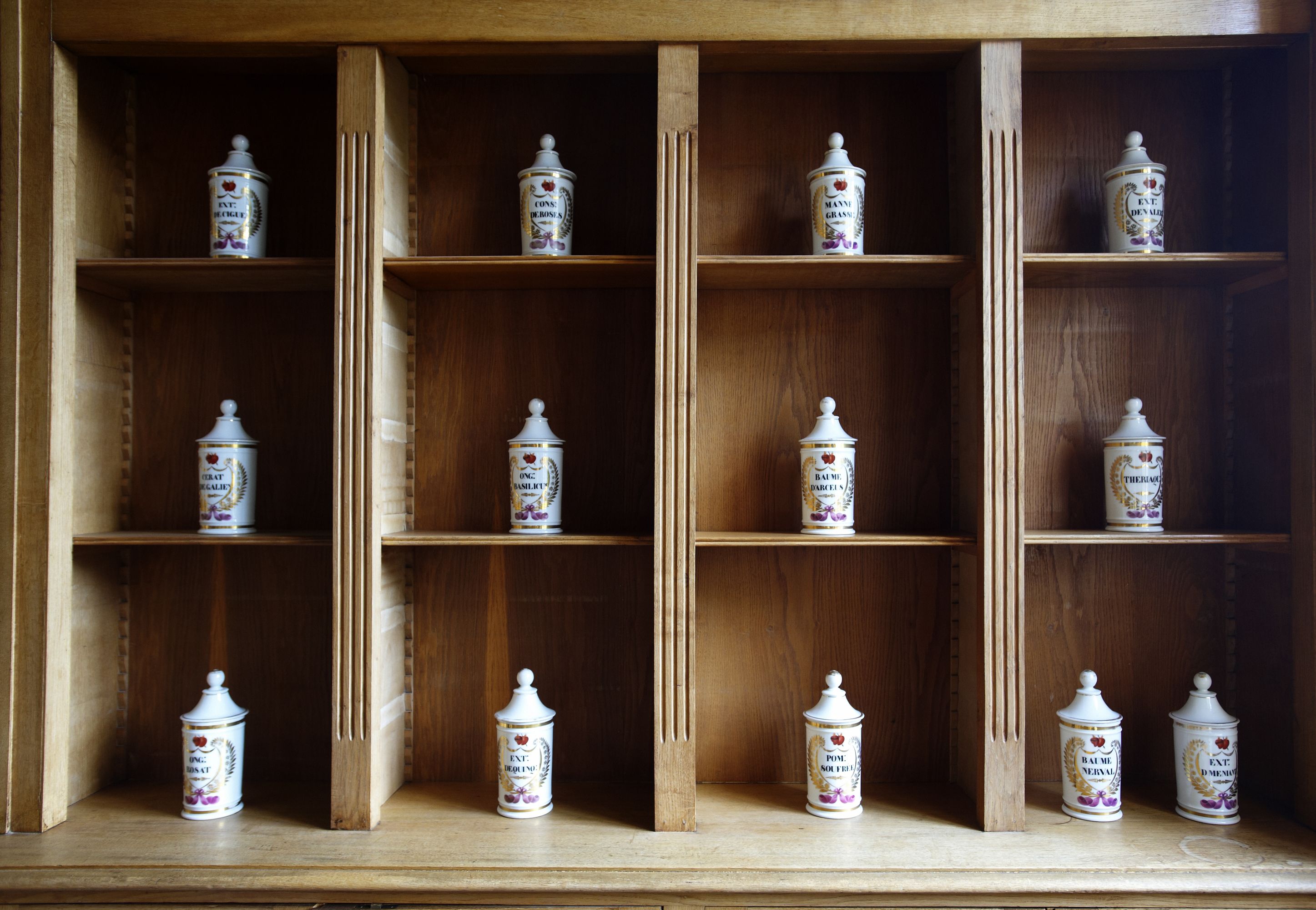 Pharmacie, vue des pots en porcelaineImmatriculation