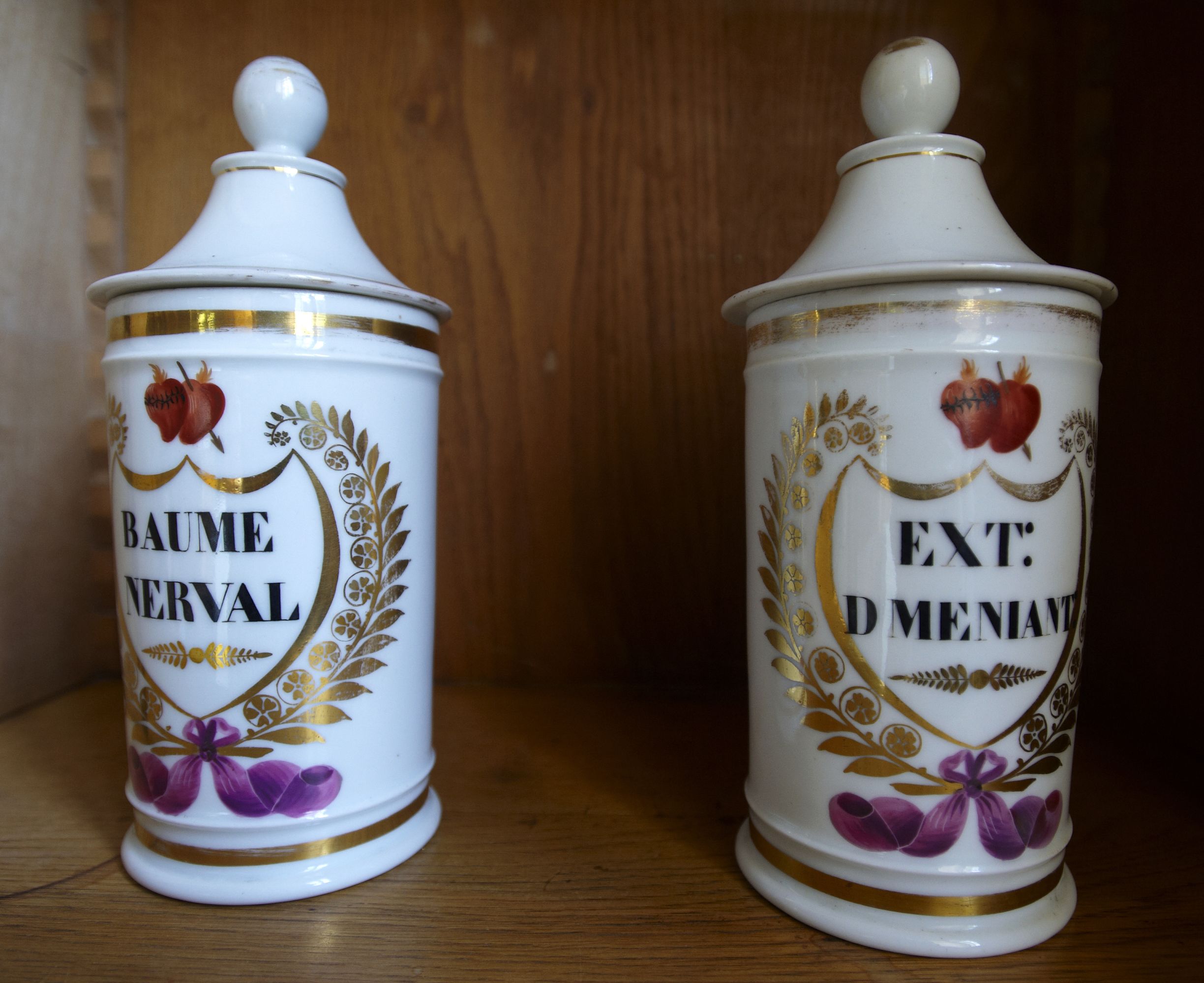 Pharmacie, détail des pots en porcelaineImmatriculation