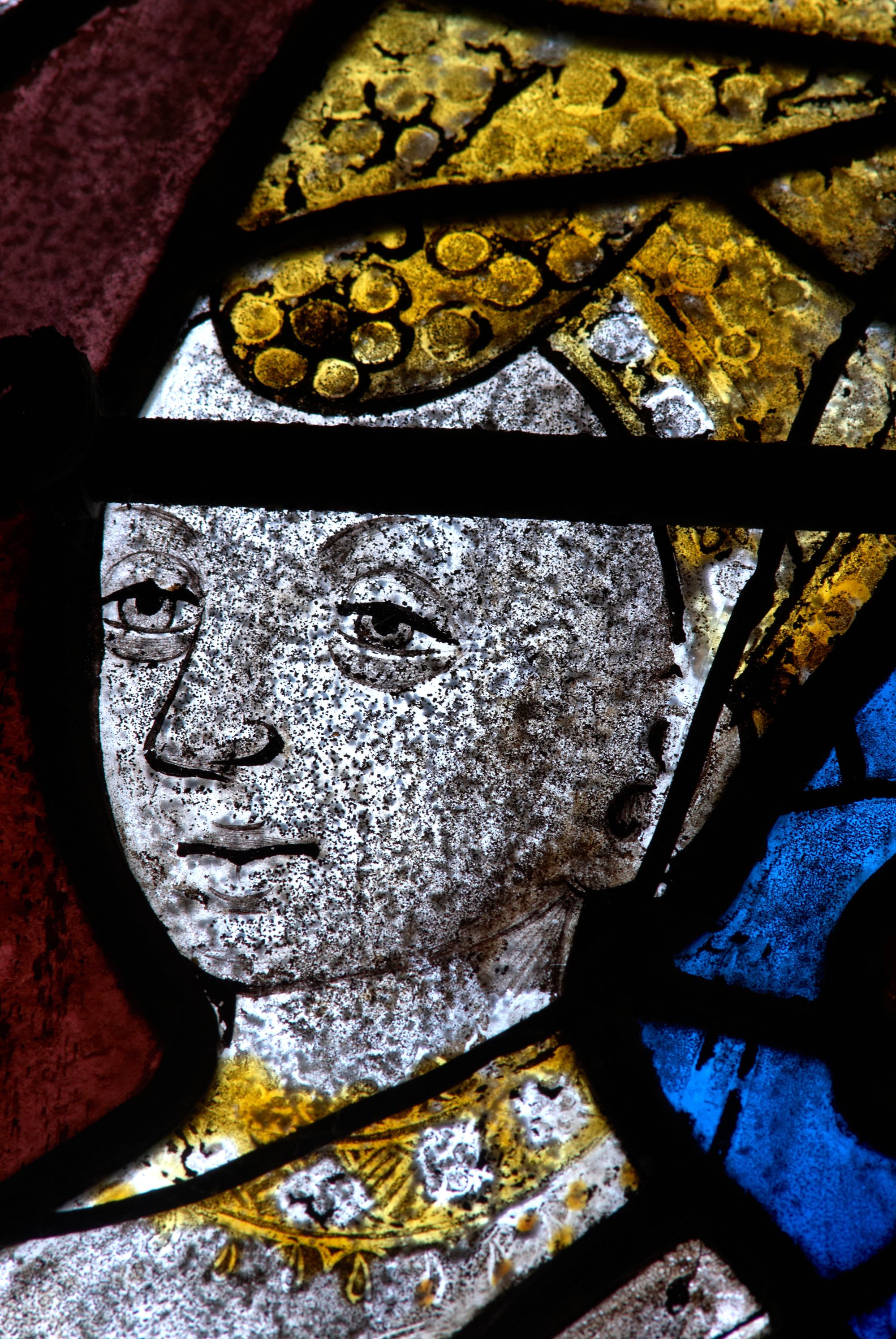 Tonquédec, le bourg : église paroissiale Saint-Pierre, vue intérieure, détail des vitrauxImmatriculation