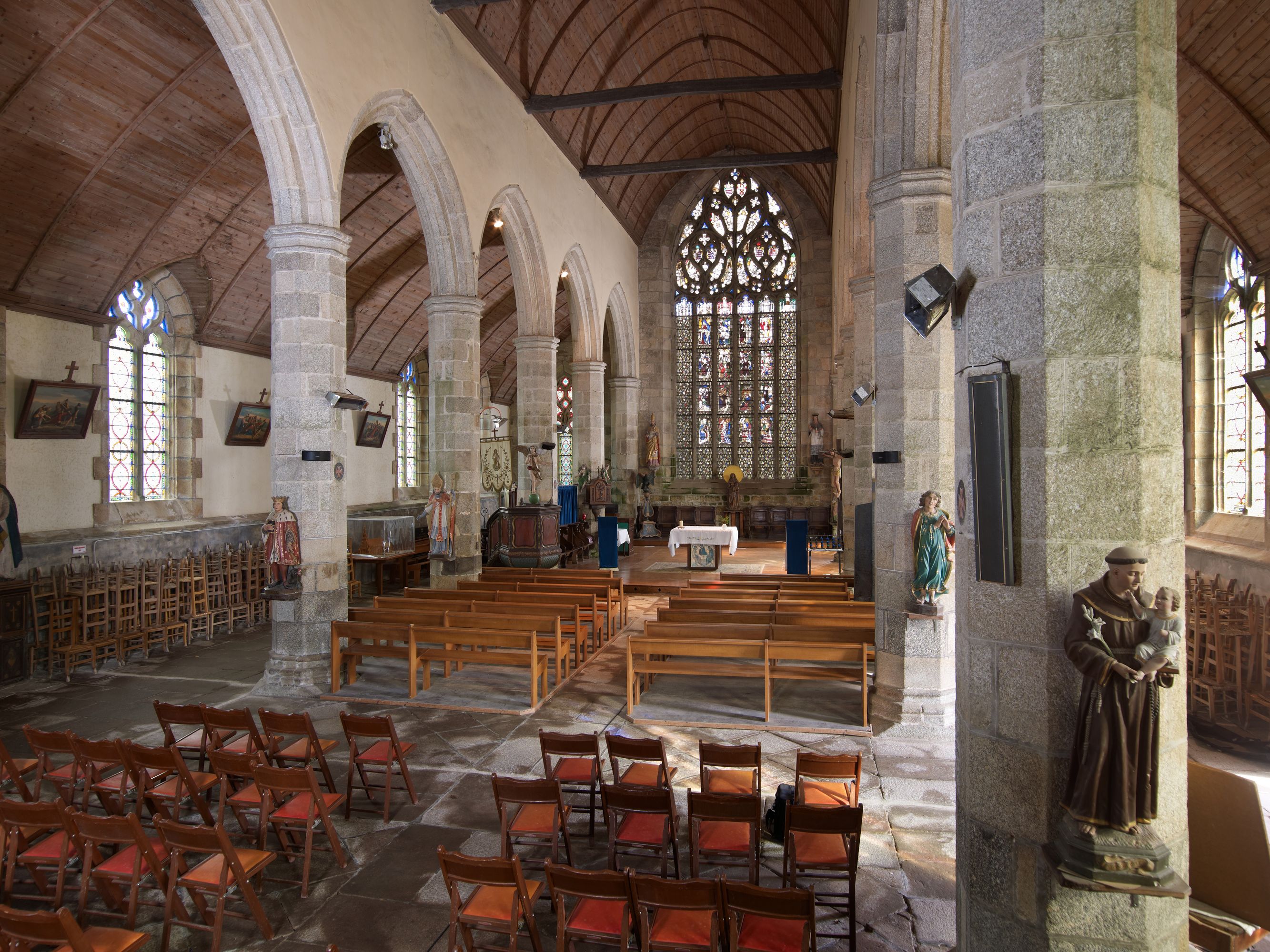 Tonquédec, le bourg : église paroissiale Saint-Pierre, vue intérieure vers le chœurImmatriculation