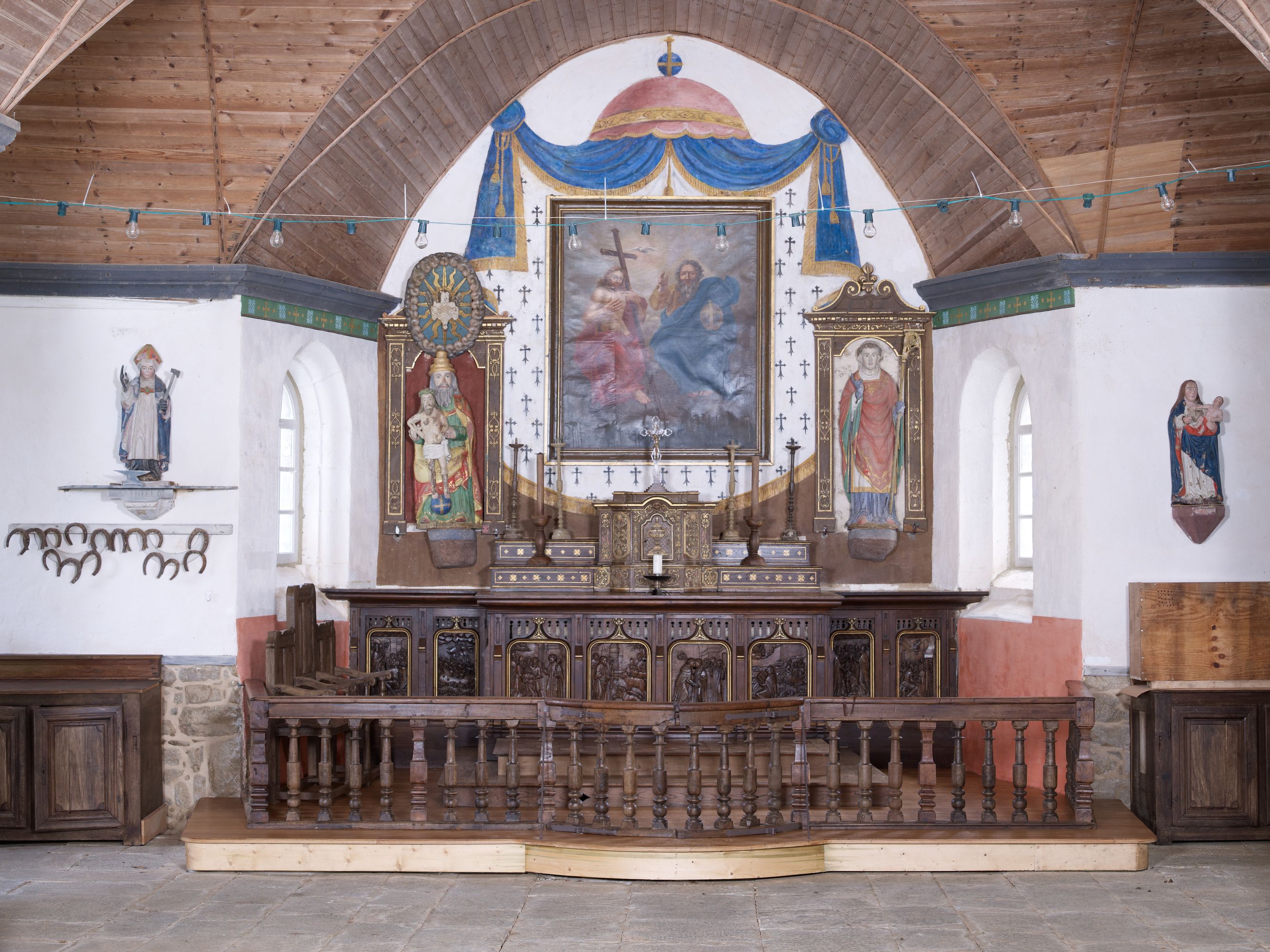 Tonquédec, Saint-Gildas : chapelle, vue intérieure, maître-autelImmatriculation