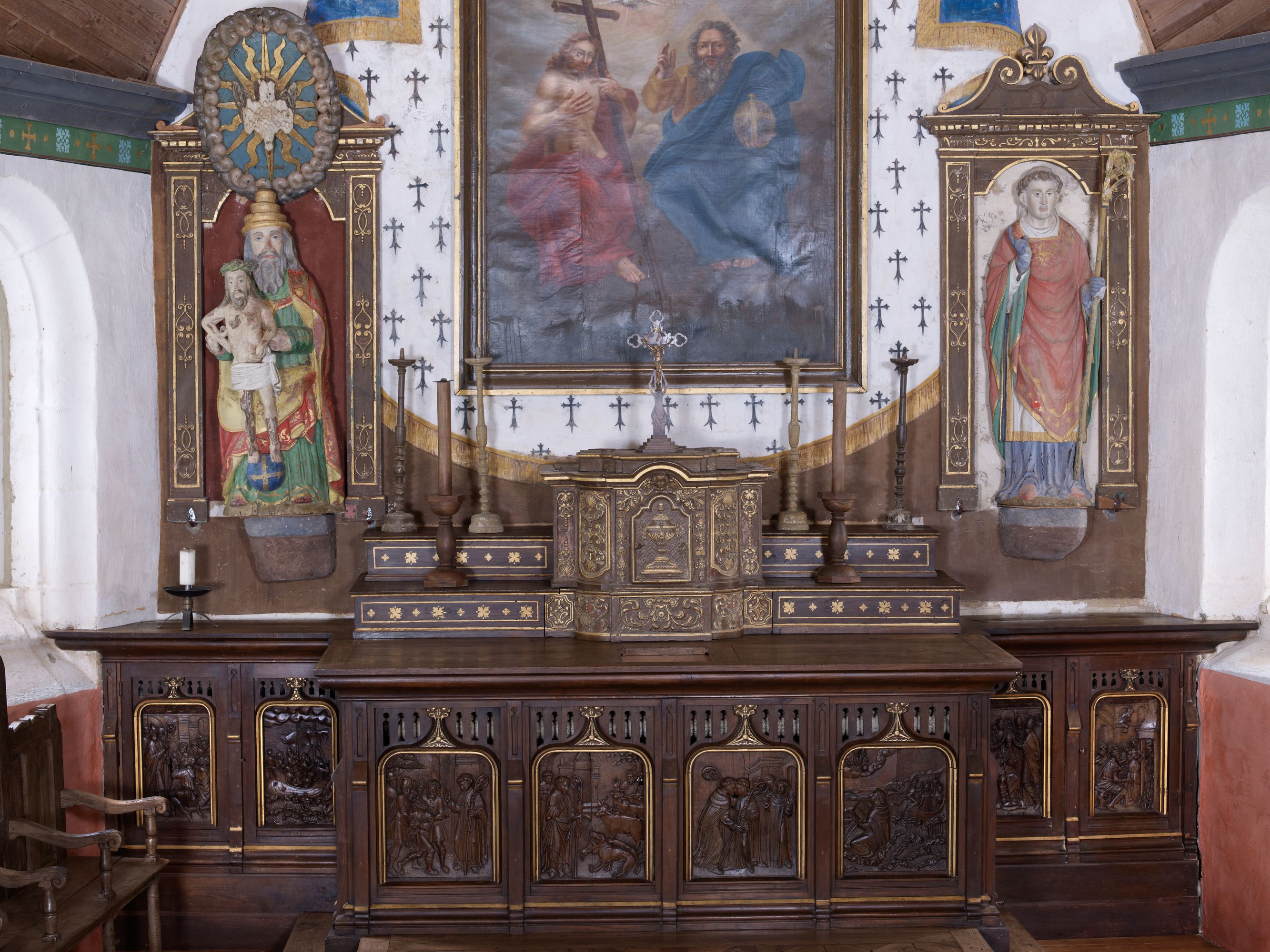 Tonquédec, Saint-Gildas : chapelle, vue intérieure, détail du maître-autelImmatriculation
