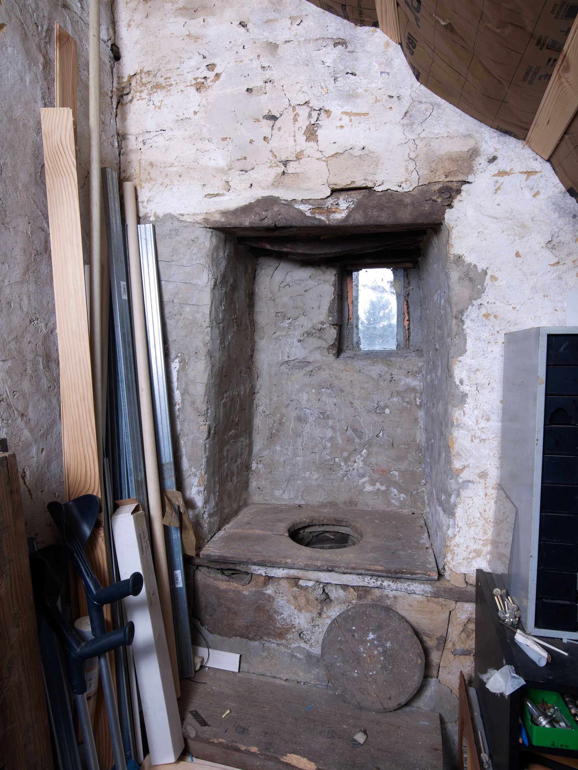 Pignon ouest. Appentis, premier étage. Détail des latrinesImmatriculation