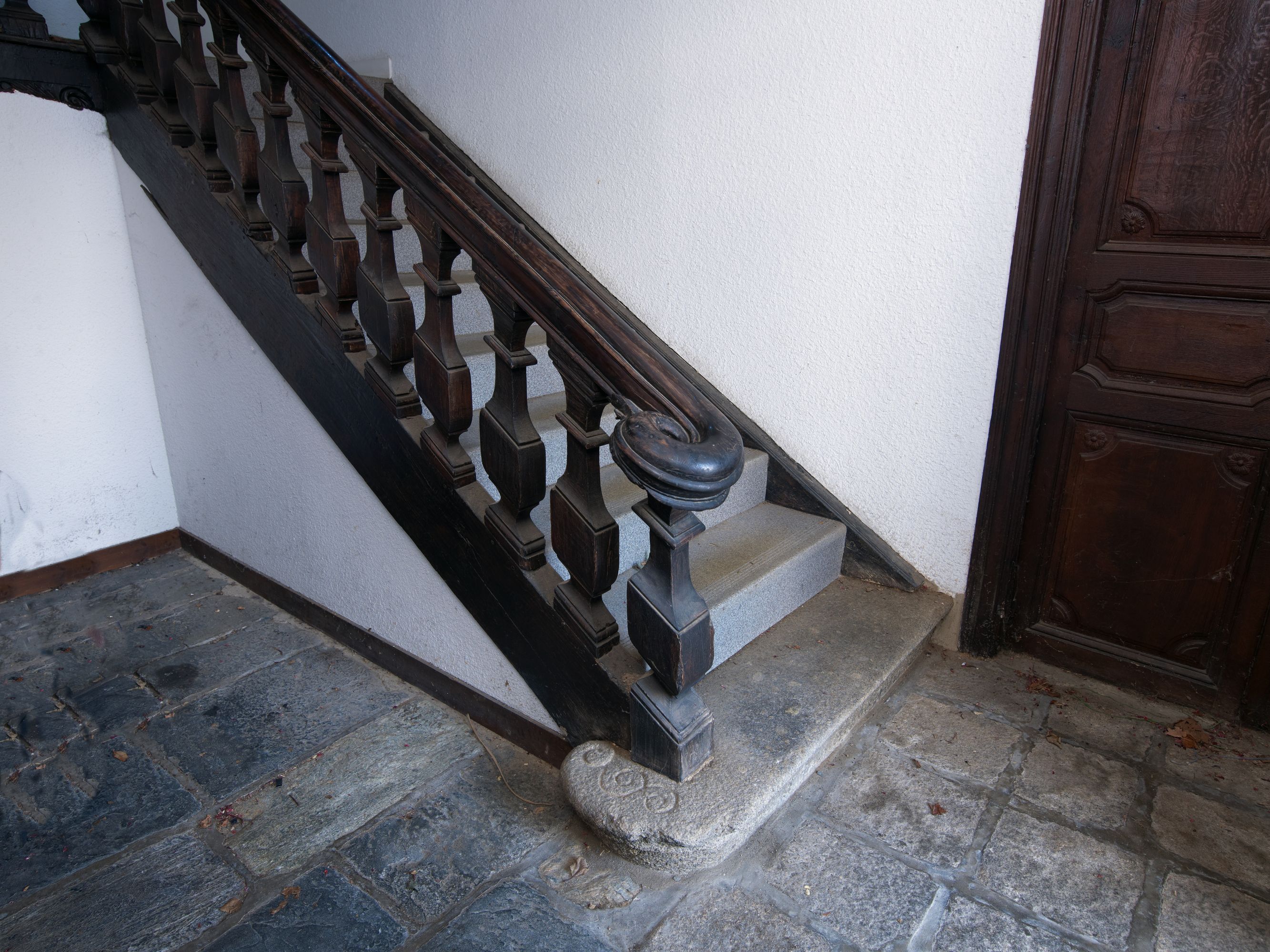 Langoat, le bourg : presbytère, intérieur, escalier rampe sur rampeImmatriculation