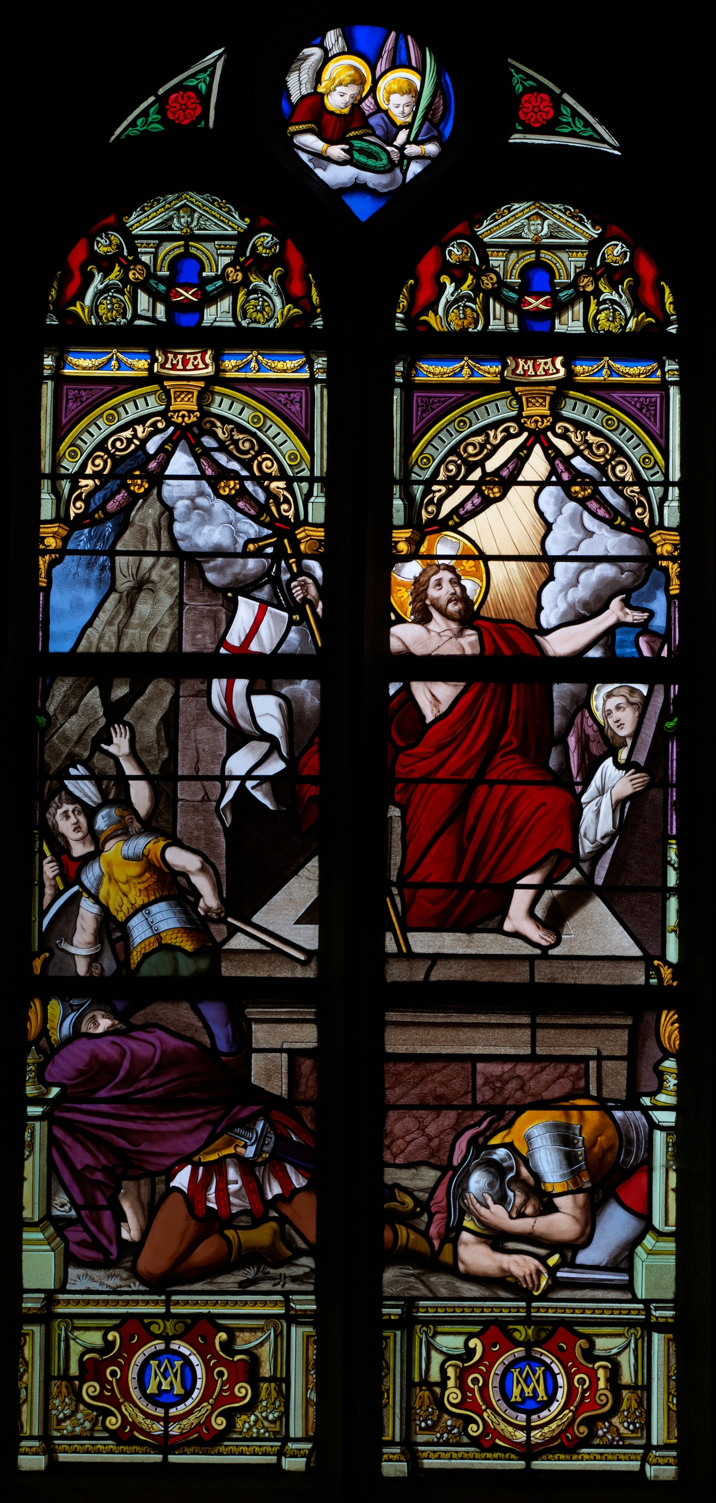 Langoat, le bourg : église paroissiale Sainte-Pompée, intérieur, vitrailImmatriculation