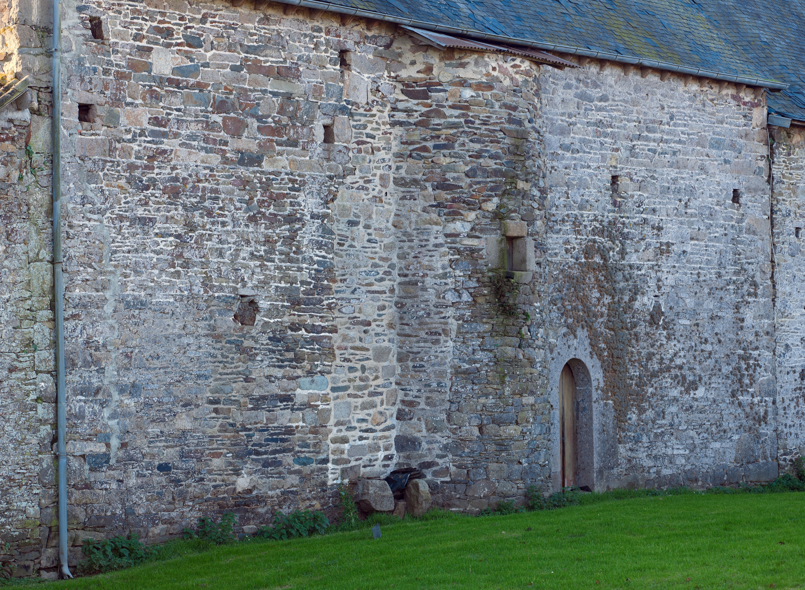 Façade nord avec escalier en demi hors-oeuvre et trace de l'ancien conduit des latrinesImmatriculation
