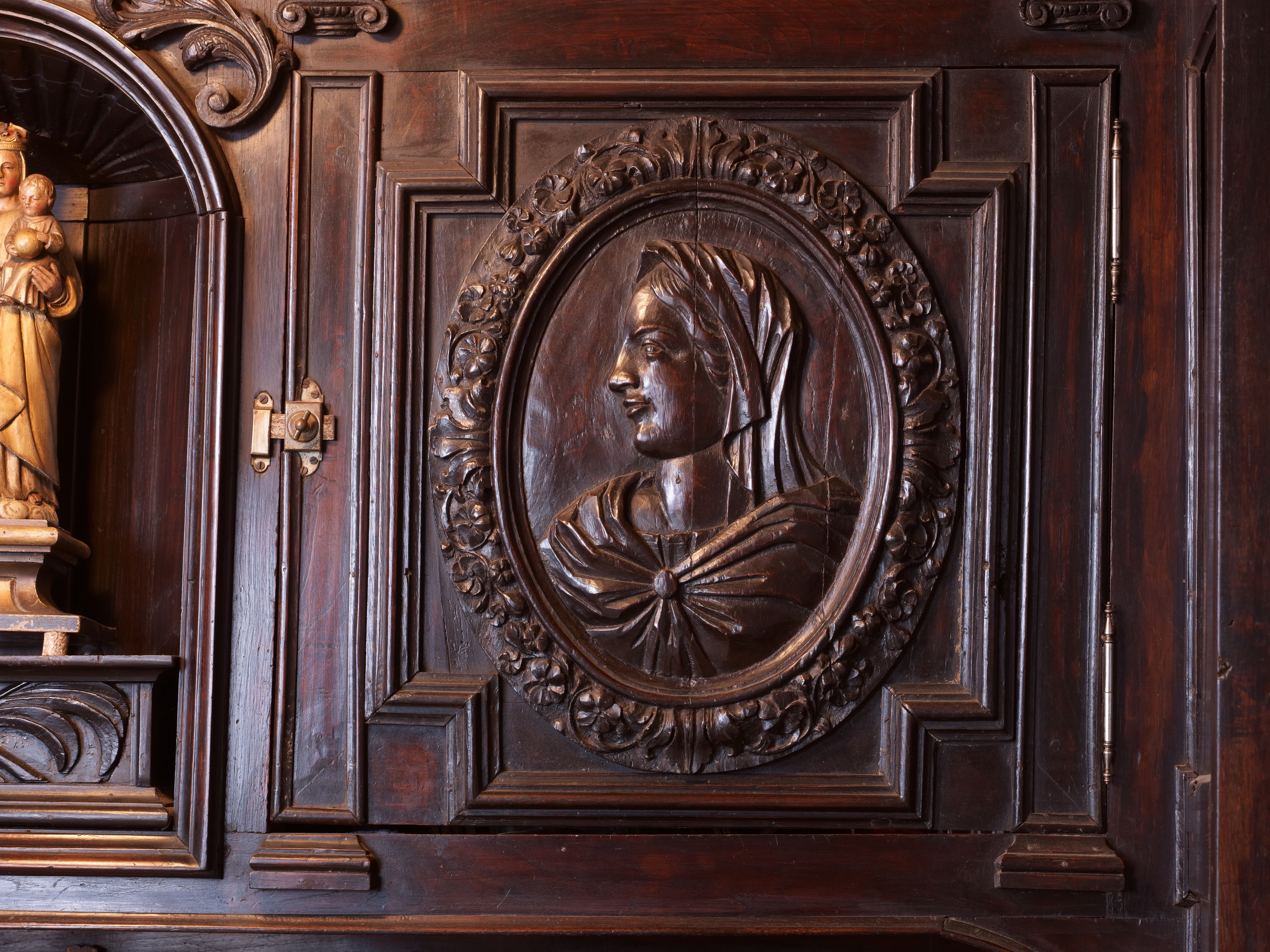 Sacristie. Meuble de sacristie. Détail d'un bas-reliefImmatriculation
