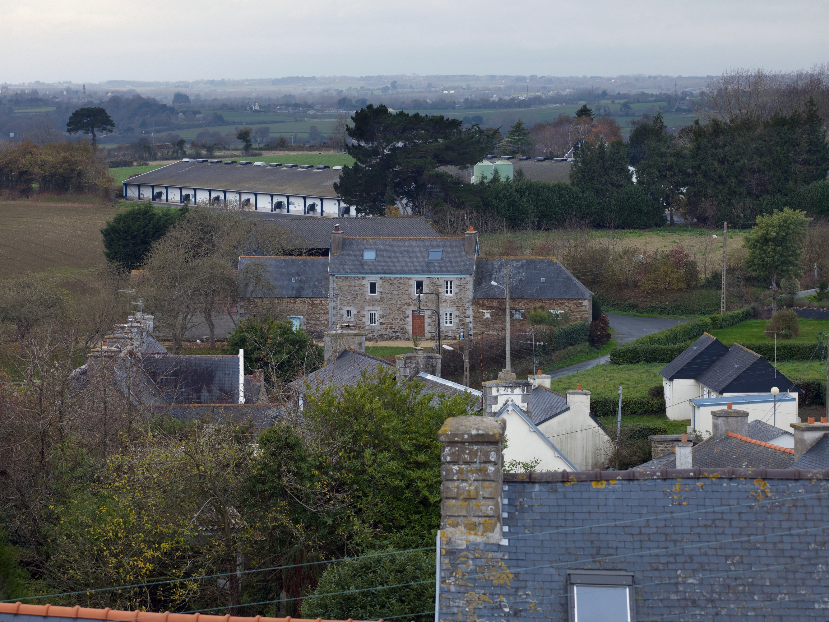 Ancienne ferme et bâtiments agricoles modernes au nord de l'église paroissiale. Vue générale sudImmatriculation
