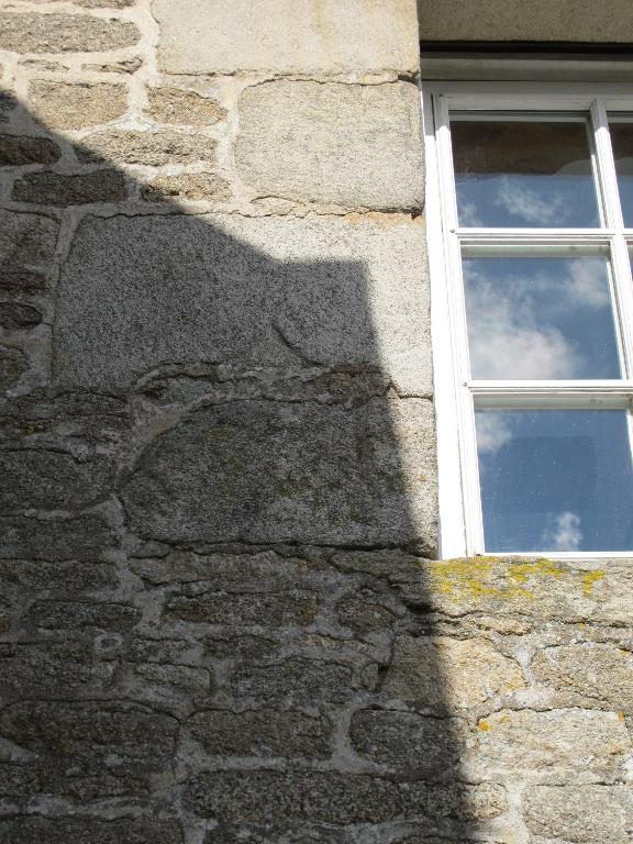Alignement nord, ancien logis : remploi d'un linteau de fenêtre dans l'encadrement de la porte du grenierImmatriculation