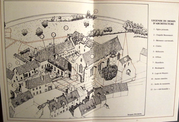 Dessin de l'abbaye par Jacques Pichon, in : Lehon, prieuré et châteauImmatriculation