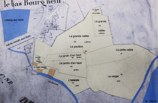Dinan, extrait du cadastre de 1811, le Verger Jacquet, retranscription sur plan de l'acte de 1761Immatriculation