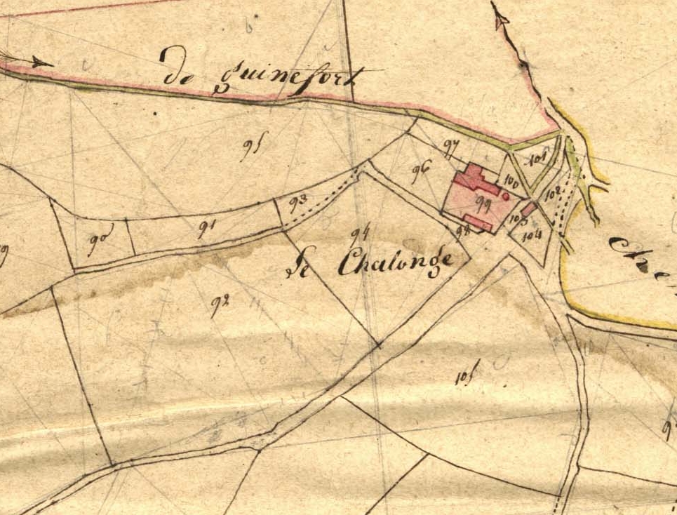 Extrait du cadastre de 1811, le château et le moulin du ChalongeImmatriculation