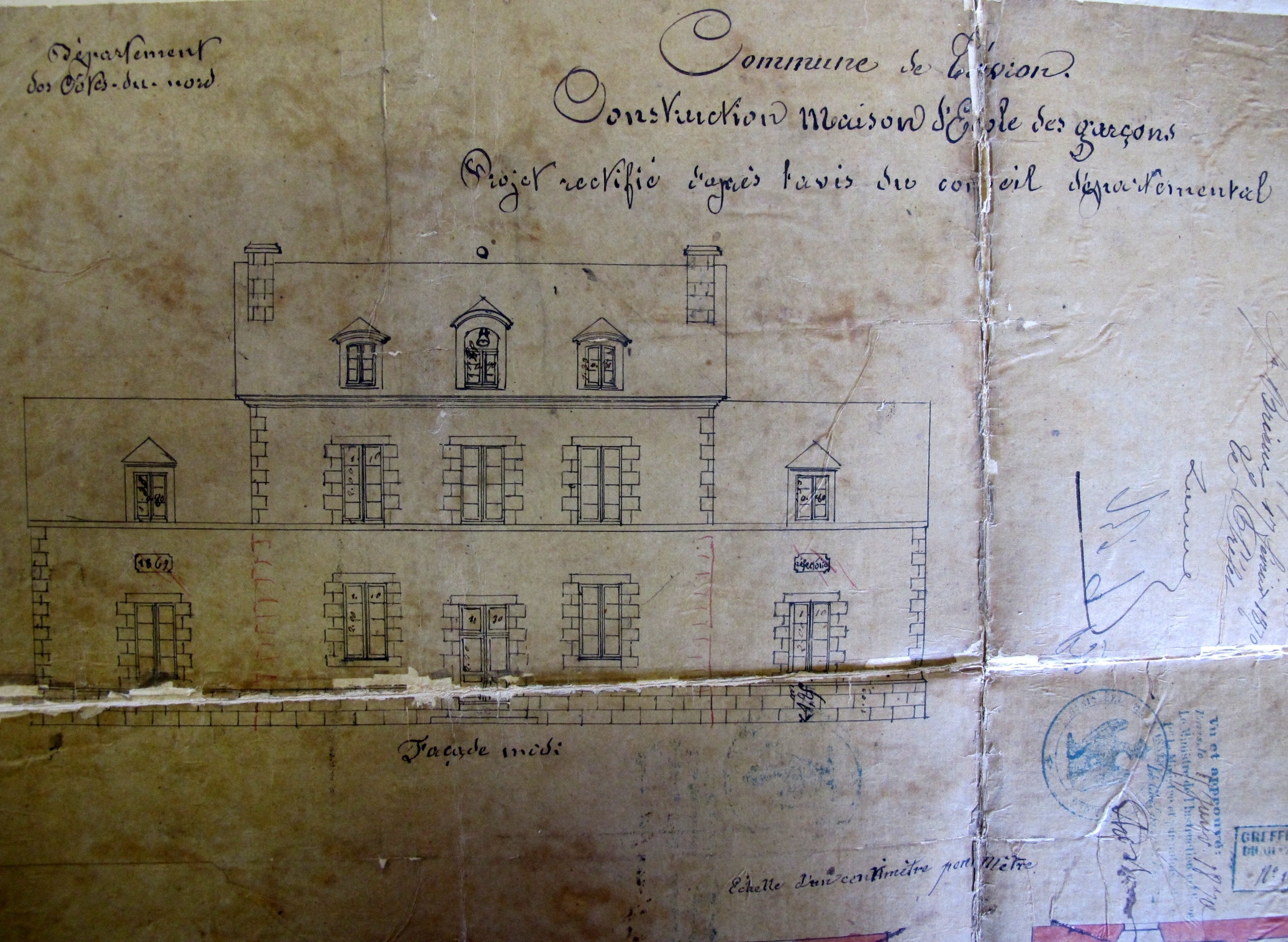Elévation de la façade sur le midi, projet de construction d'une école des garçonsImmatriculation