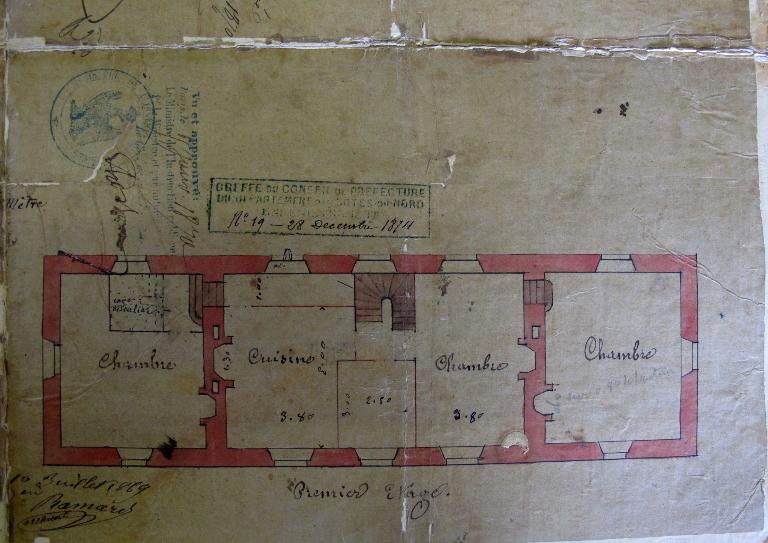 Projet de construction d'une école des garçons, premier étage, C. Ramard, architecte, 1869Immatriculation