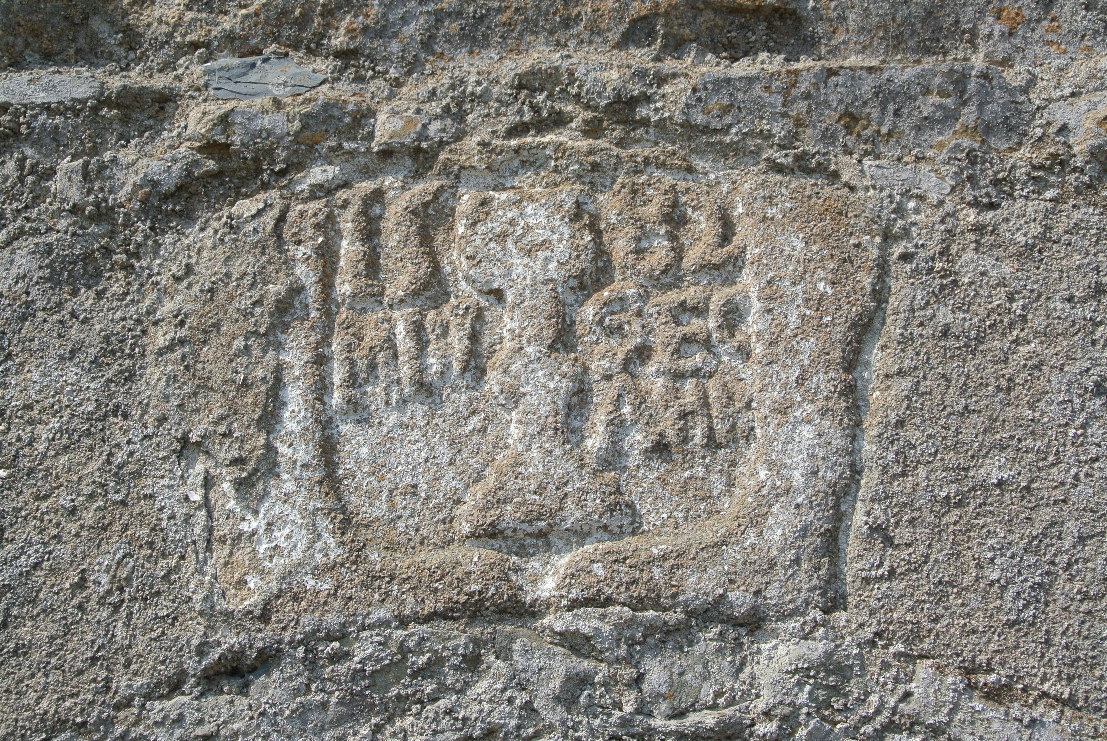 Hent Ty Forn. Ancienne maison de prêtre. Détail du calice et de la date 1582Immatriculation