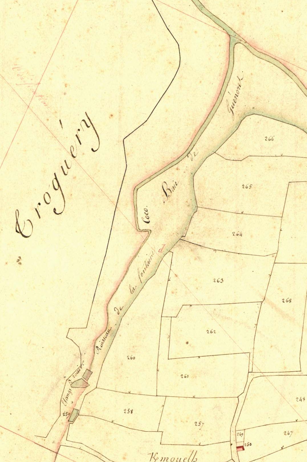 Les routoirs de l'anse de Gwenored en 1835. Extrait du cadastre ancien (A.D. 22, sous-série 3P, section unique)Immatriculation