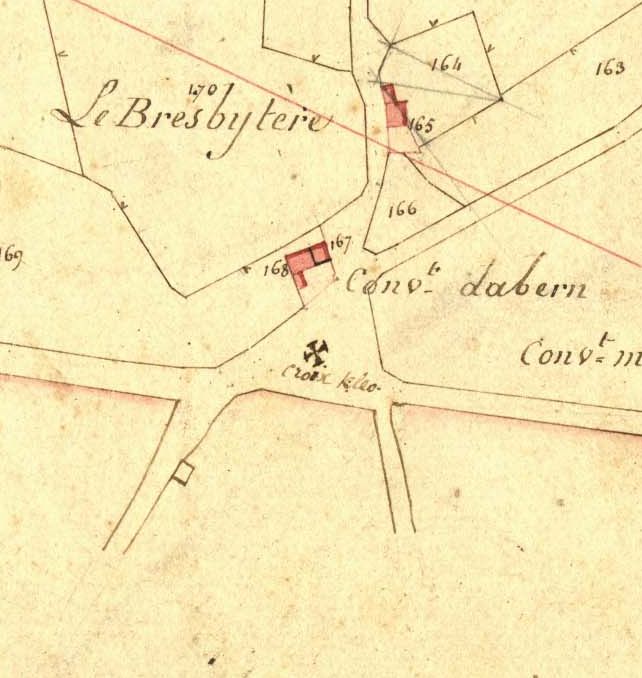 Emplacement de la croix de Kerleo en 1835. Extrait du cadastre ancien (A.D. 22, sous-série 3P, section unique)Immatriculation