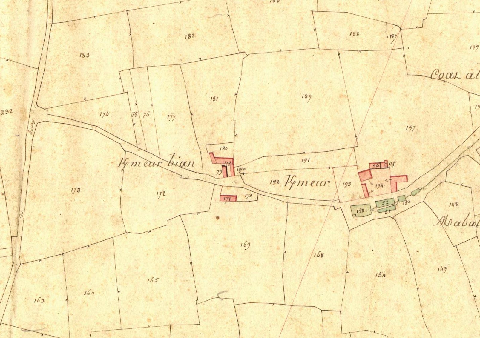 Kermeur Vras en 1835. Extrait du cadastre ancien (A.D. 22, sous-série 3P, section unique, 1ère feuille)Immatriculation