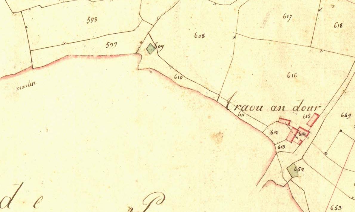 Routoirs de Traou an dour en 1835. Extrait du cadastre ancien (A.D. 22, sous-série 3P; section unique, feuille 2)Immatriculation