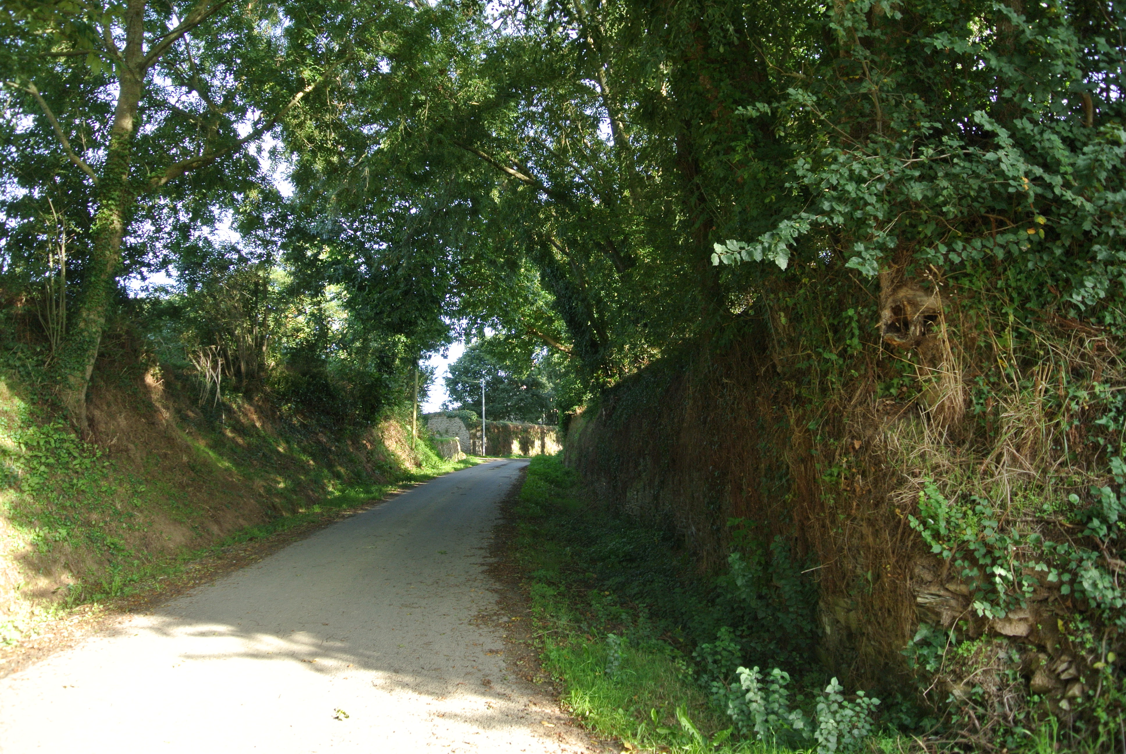 Sainte-Anne. Route bordée de talus-mur. Vue généraleImmatriculation