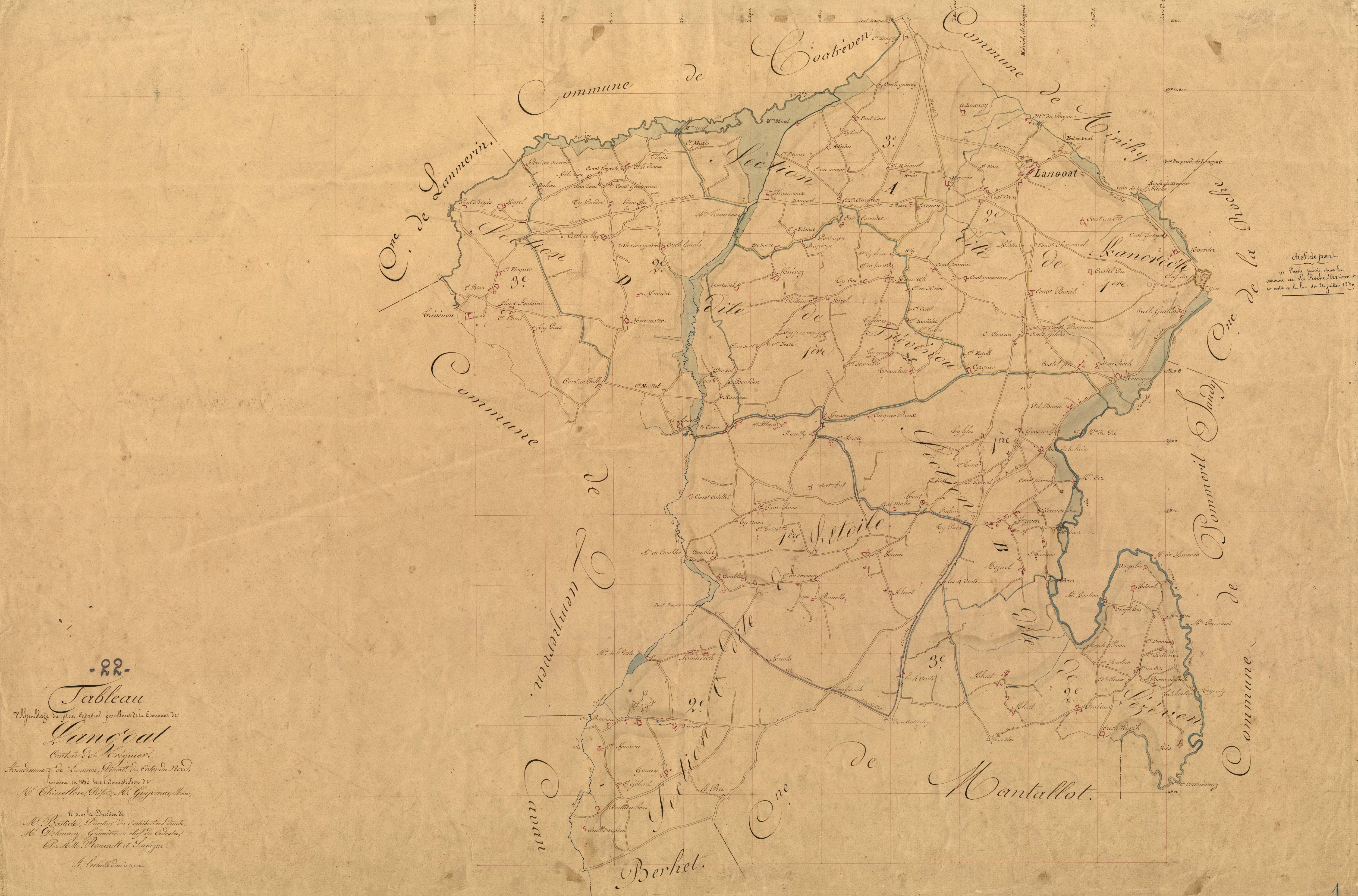 Tableau d'assemblage du cadastre ancien de la commune de Langoat, 1836Immatriculation