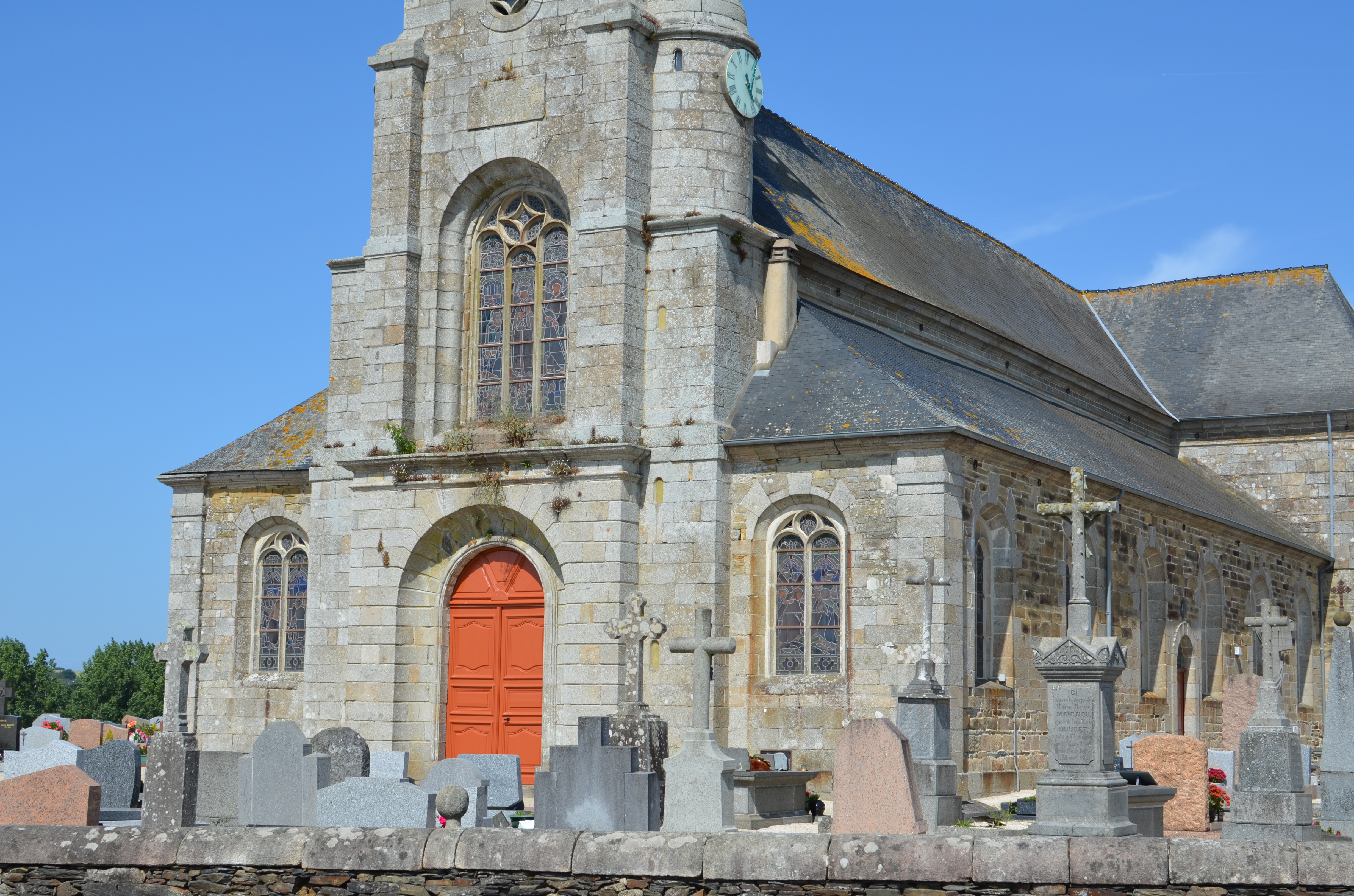 Langoat, le bourg : église paroissiale Sainte-Pompée, vue depuis l'ouestImmatriculation