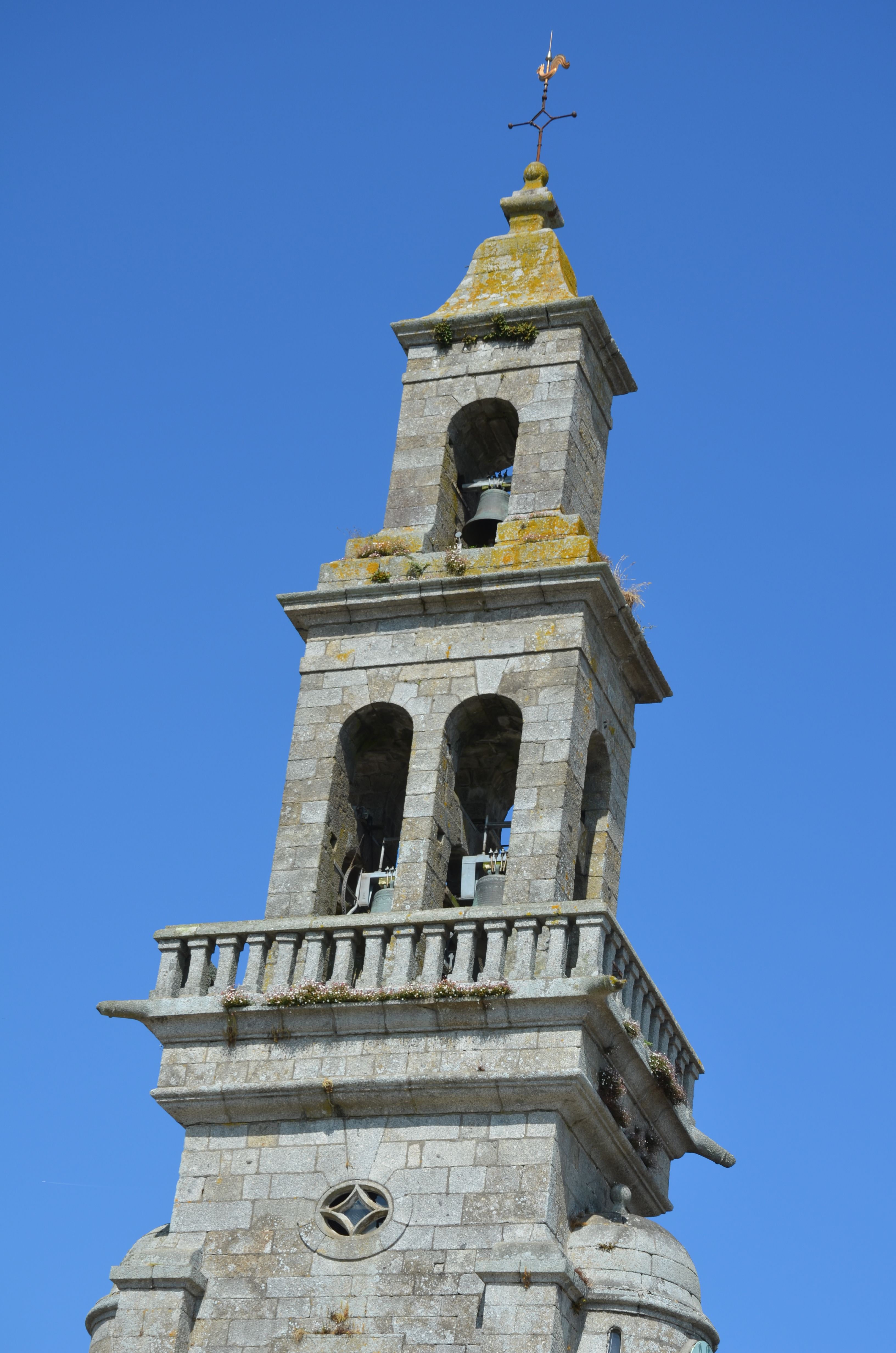 Langoat, le bourg : église paroissiale Sainte-Pompée, clocher-tour et chambres des cloches, vue depuis l'ouestImmatriculation