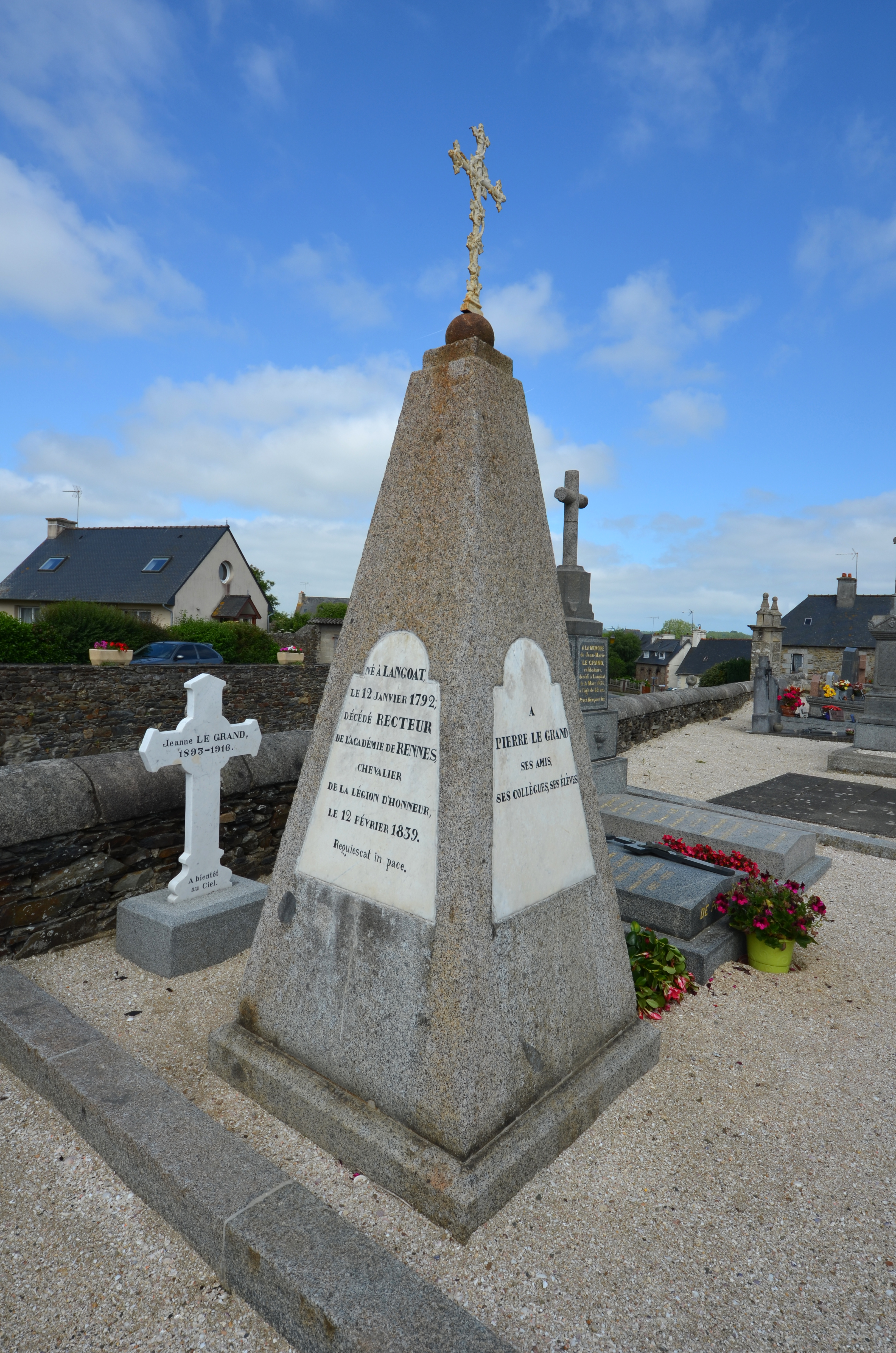 Langoat, le bourg : église paroissiale Sainte-Pompée, le cimetière, tombeau de Pierre LE GRAND (1792-1839), recteur de l'Académie de Rennes. Ce monument a été érigé en 1845Immatriculation