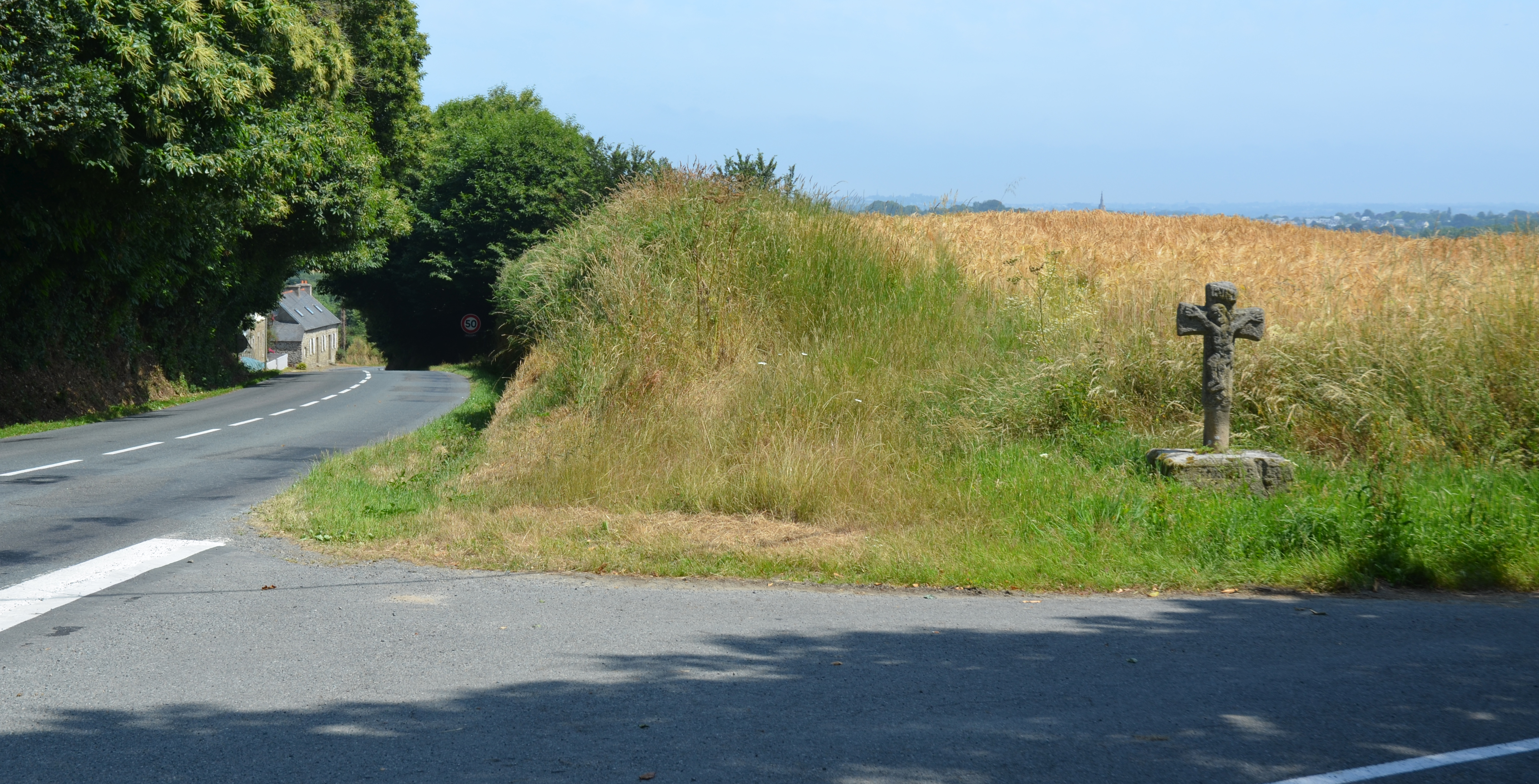 Langoat, carrefour de Ty Poas : croix de chemin, vue de situation depuis le sudImmatriculation